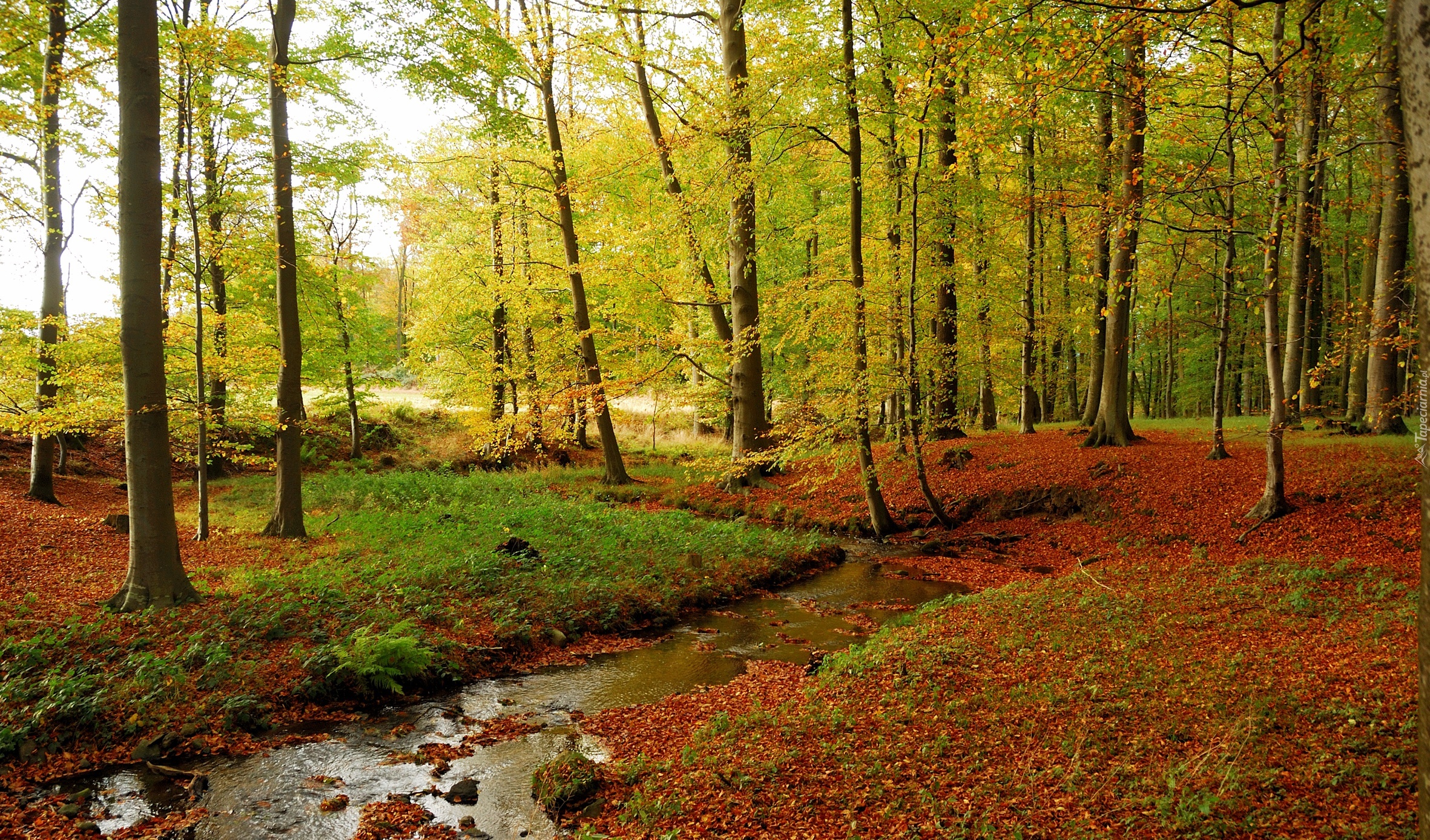 Edytor tapety: Las, Drzewa, Rzeczka