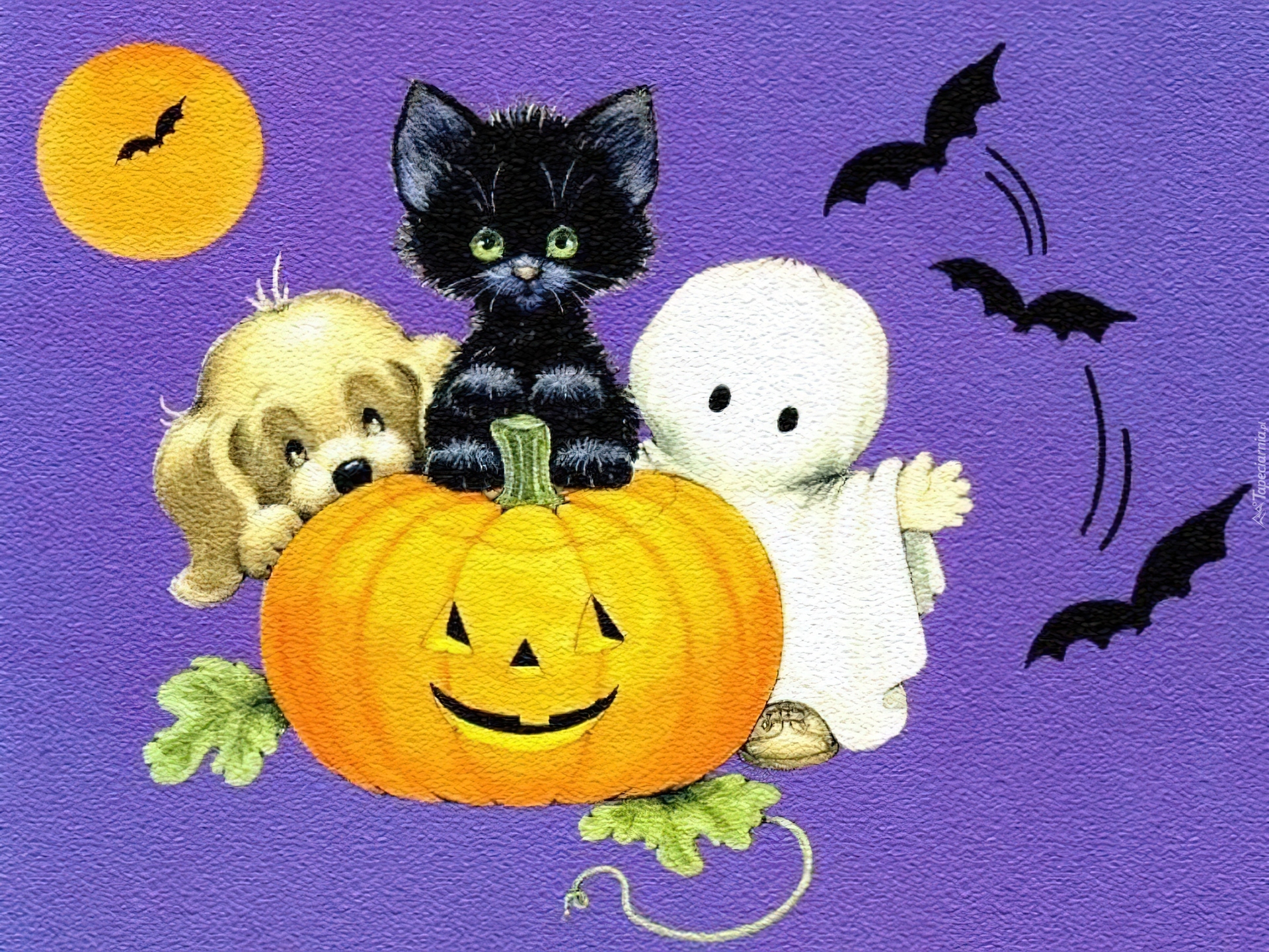 Edytor tapety: Halloween,piesek, kotek , dynia