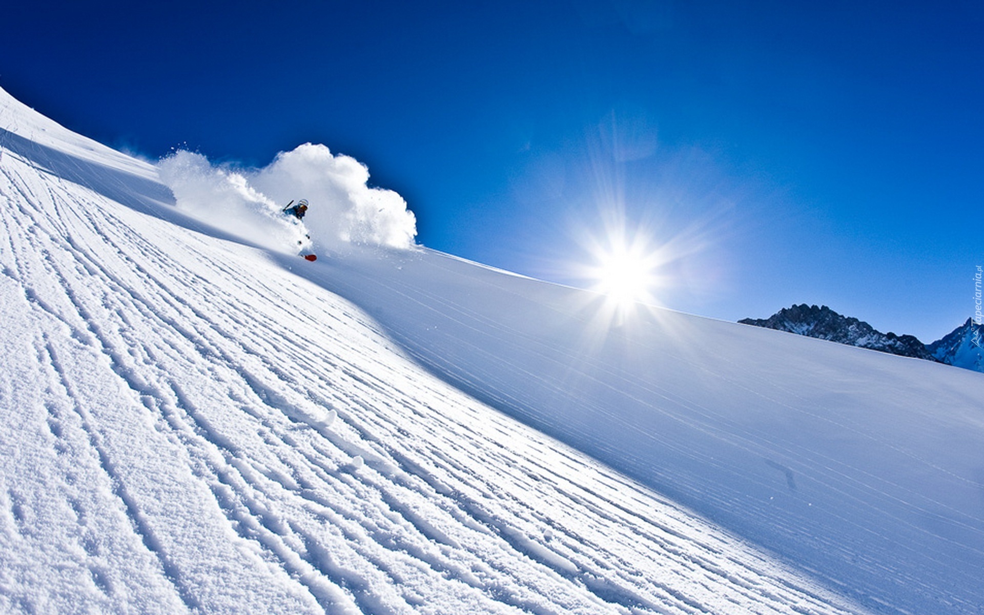 Edytor tapety: Góry, Narciarz, Promienie, Słońca, Zima
