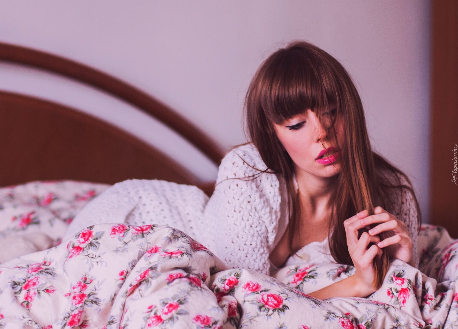 Edytor tapety: Kobieta, Szatynka, Łóżko