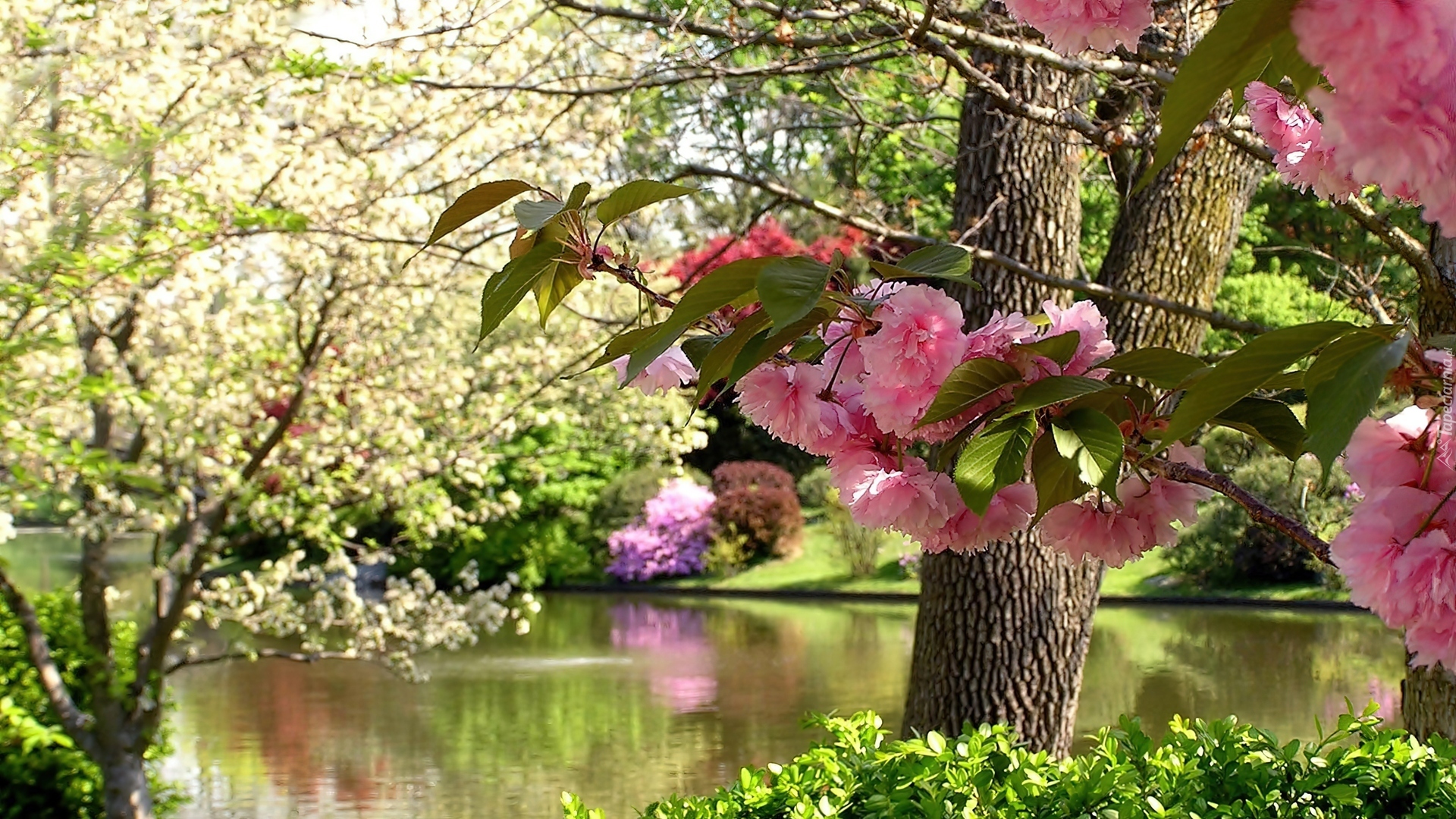 Edytor tapety: Rzeka, Kwitnące, Drzewa, Rozmycie