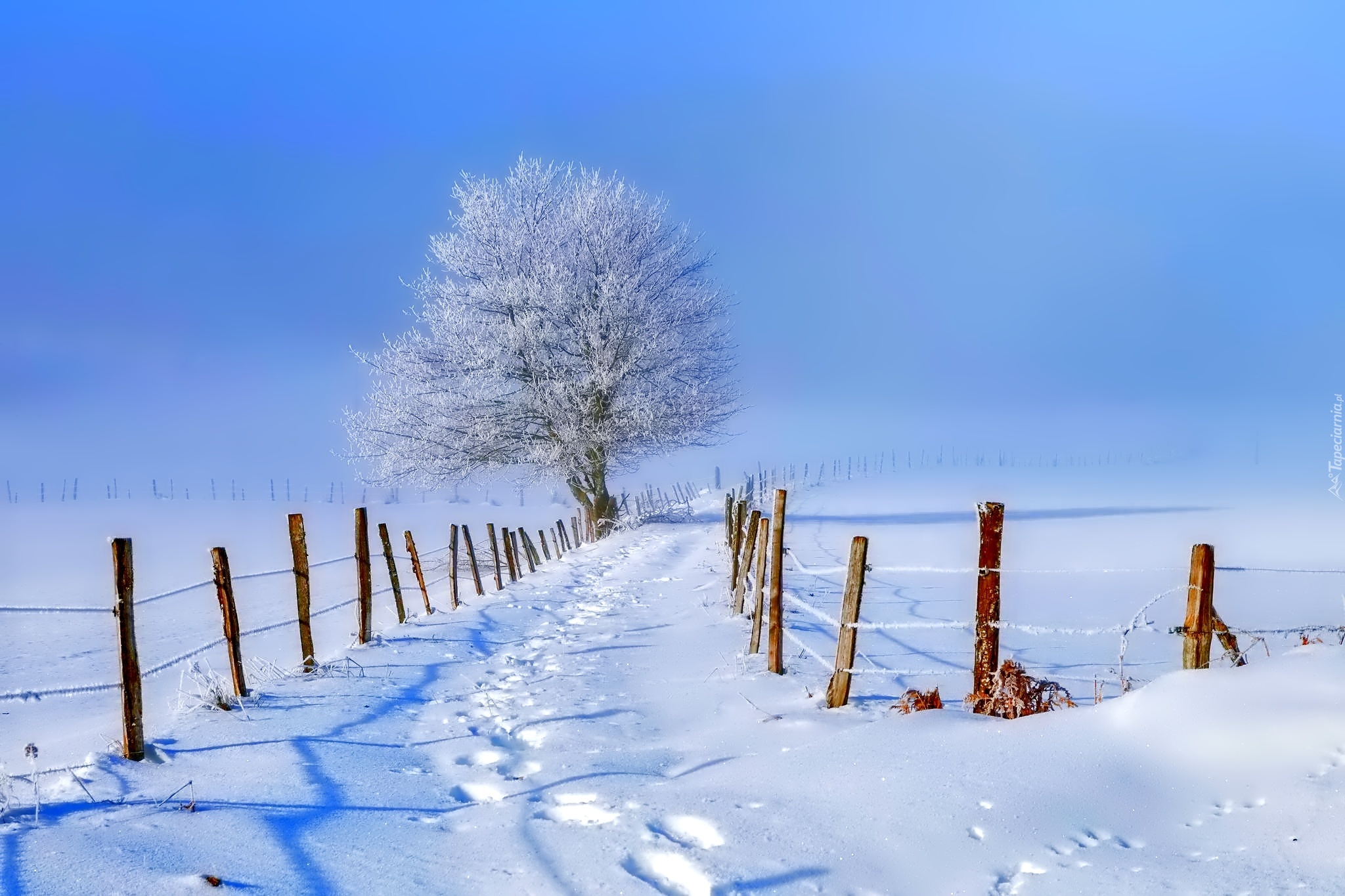Edytor tapety: Zima, Droga, Ogrodzenie, Pola