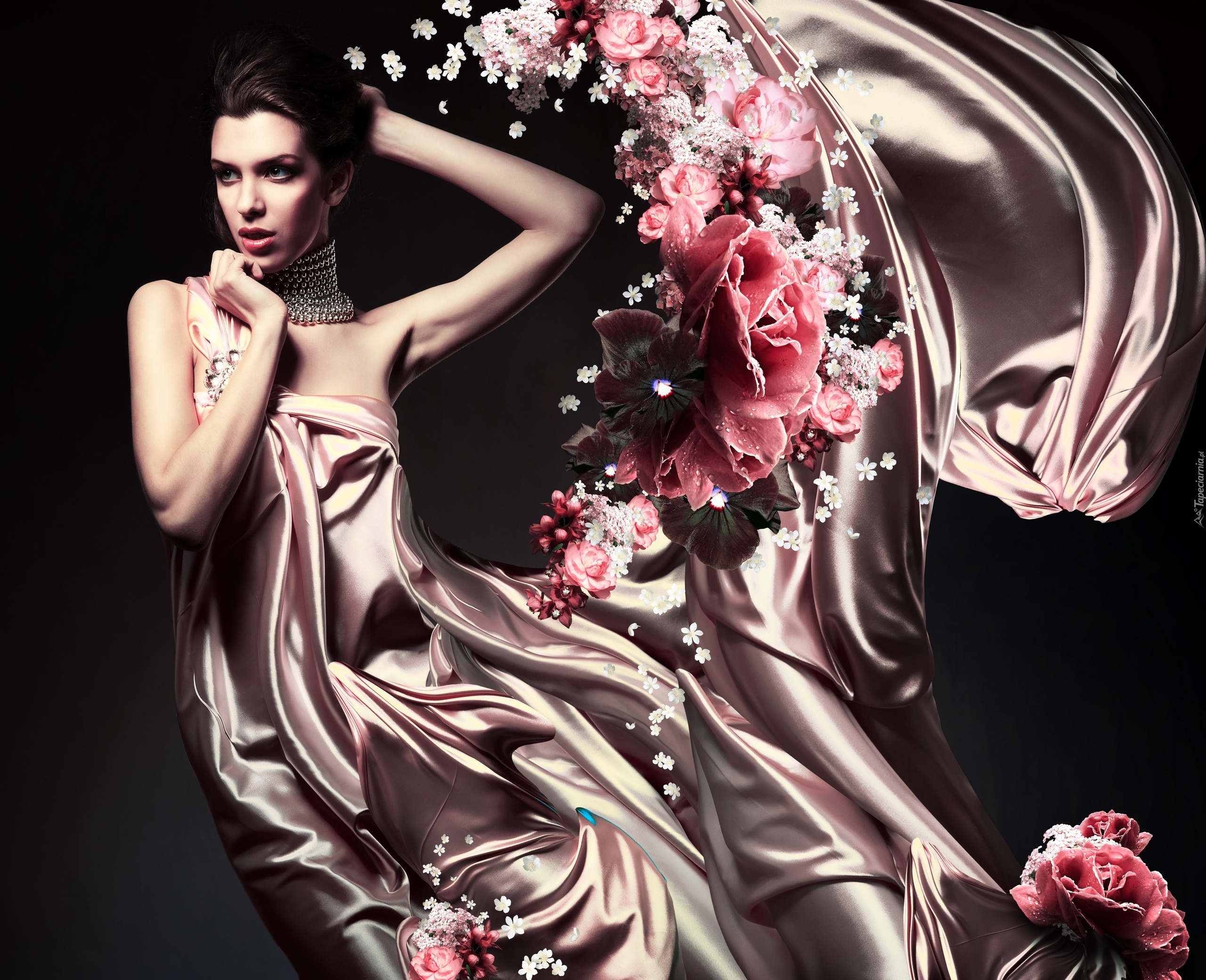 Edytor tapety: Kobieta, Modelka, Suknia, Kwiaty
