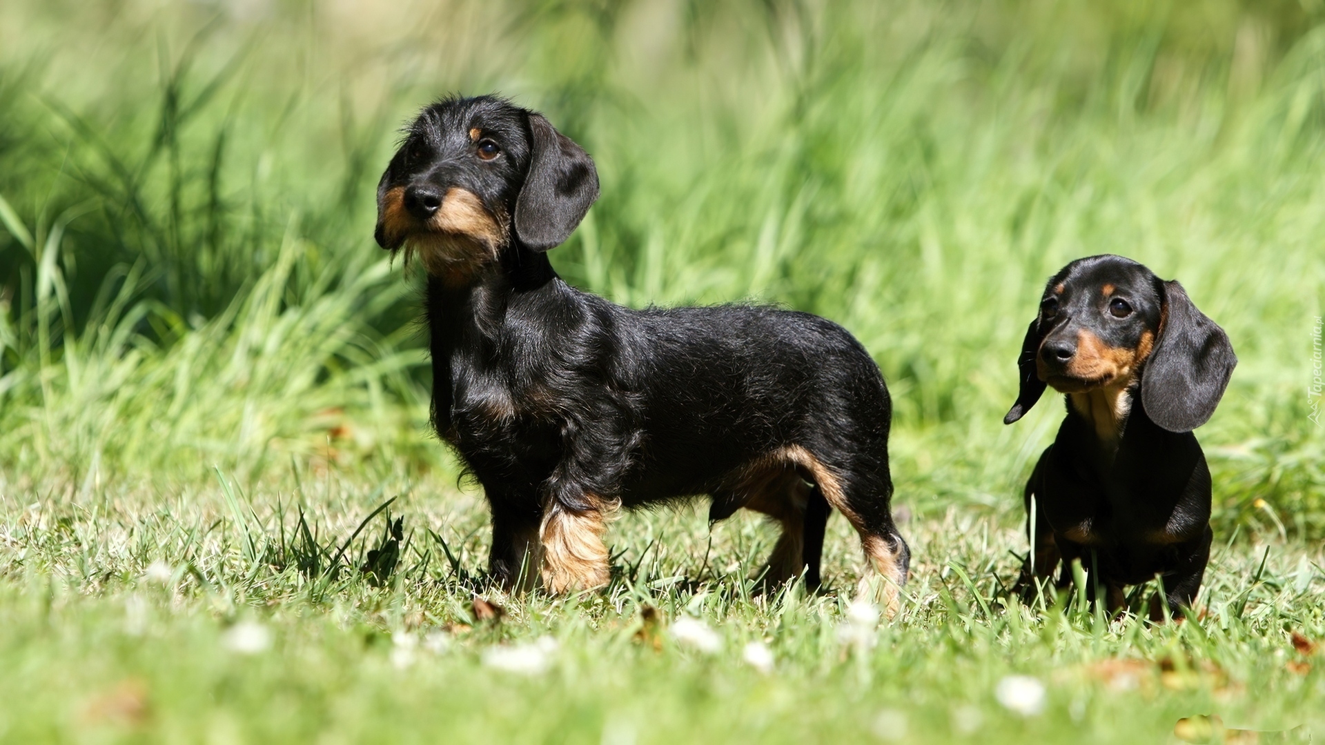 Edytor tapety: Łąka, Dwa, Czarne, Jamniki