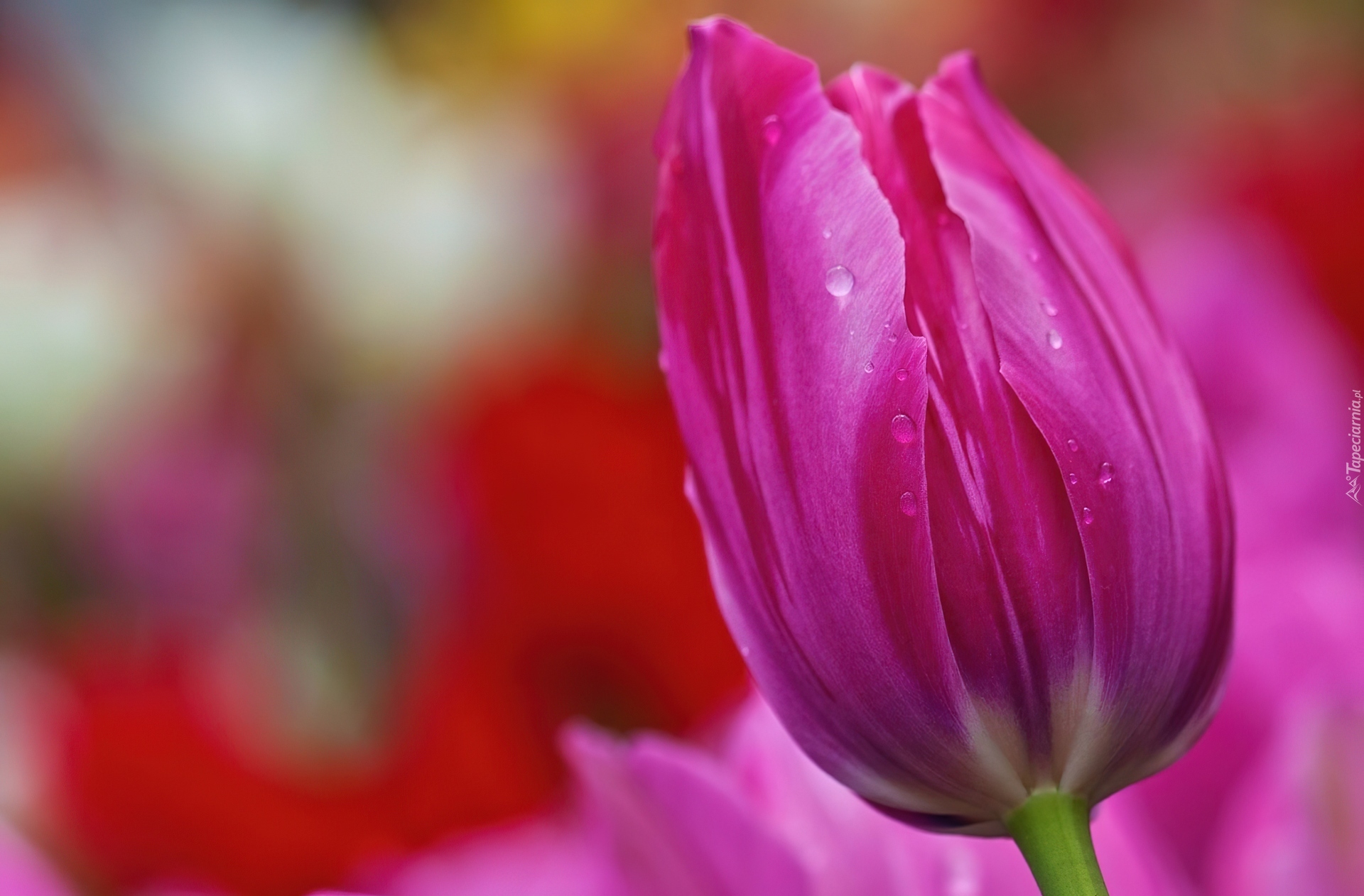 Edytor tapety: Różowy, Tulipan, Krople, Rosy