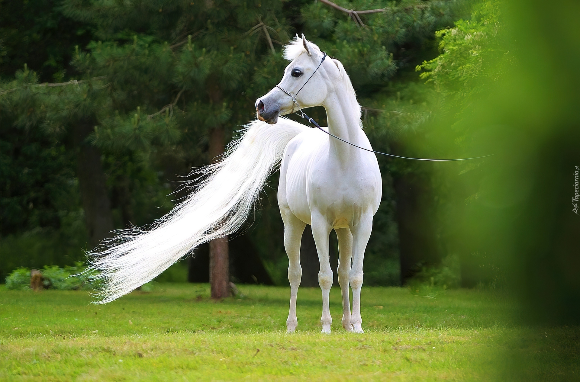 Edytor tapety: Biały, Koń, Ogon, Zieleń