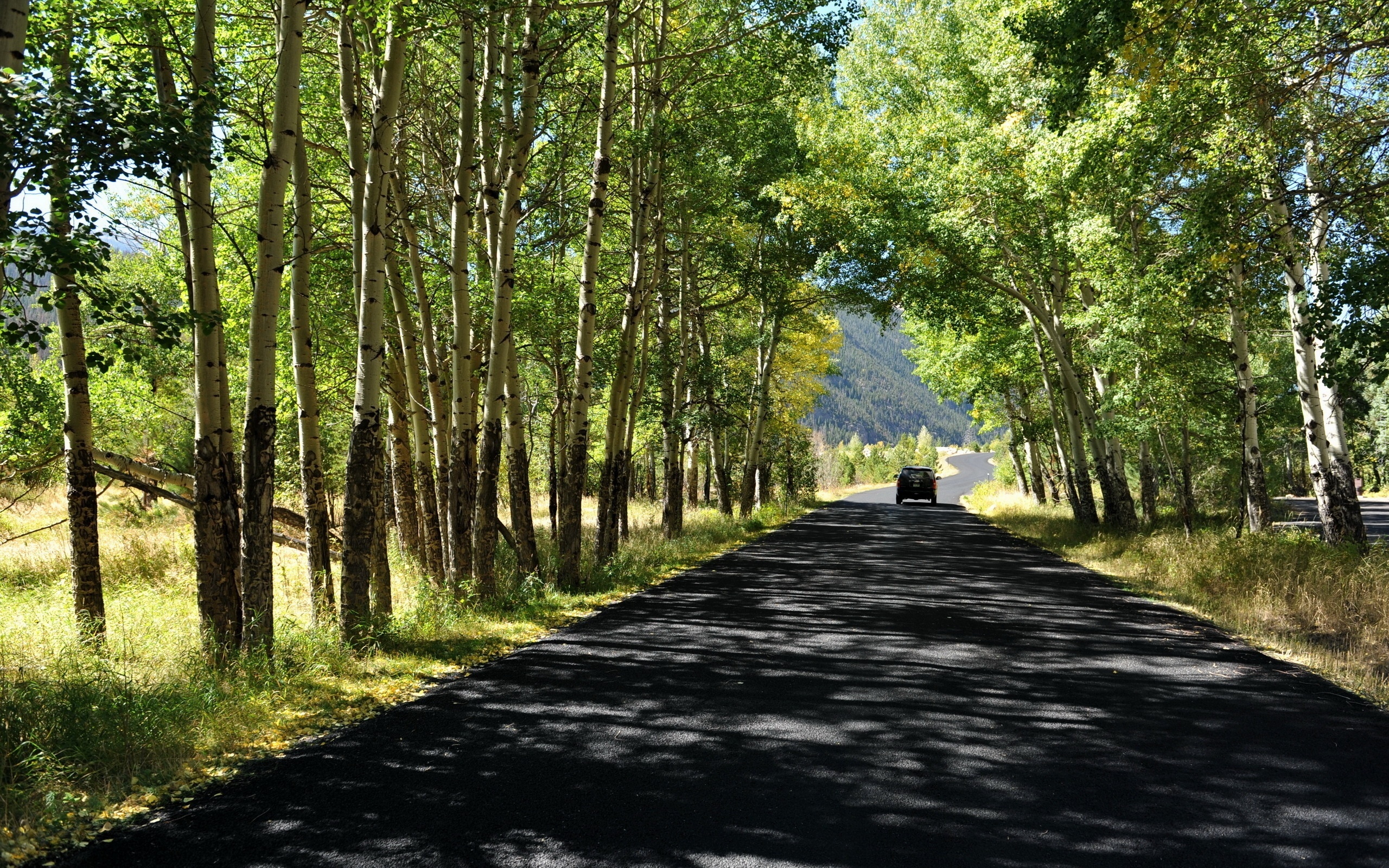 Edytor tapety: Droga, Samochód, Drzewa, Brzozy