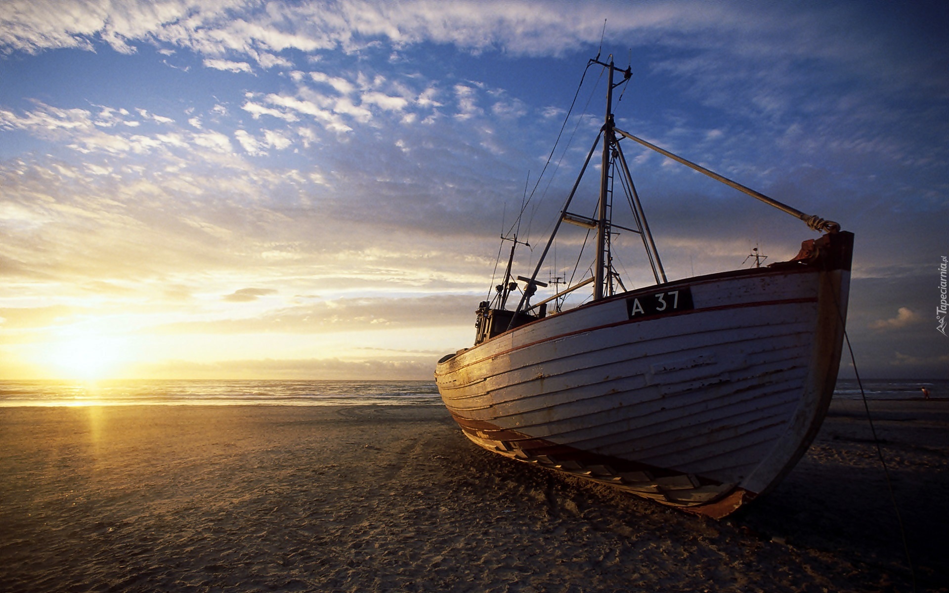 Edytor tapety: Świt, Morze, Plaża, Łódź