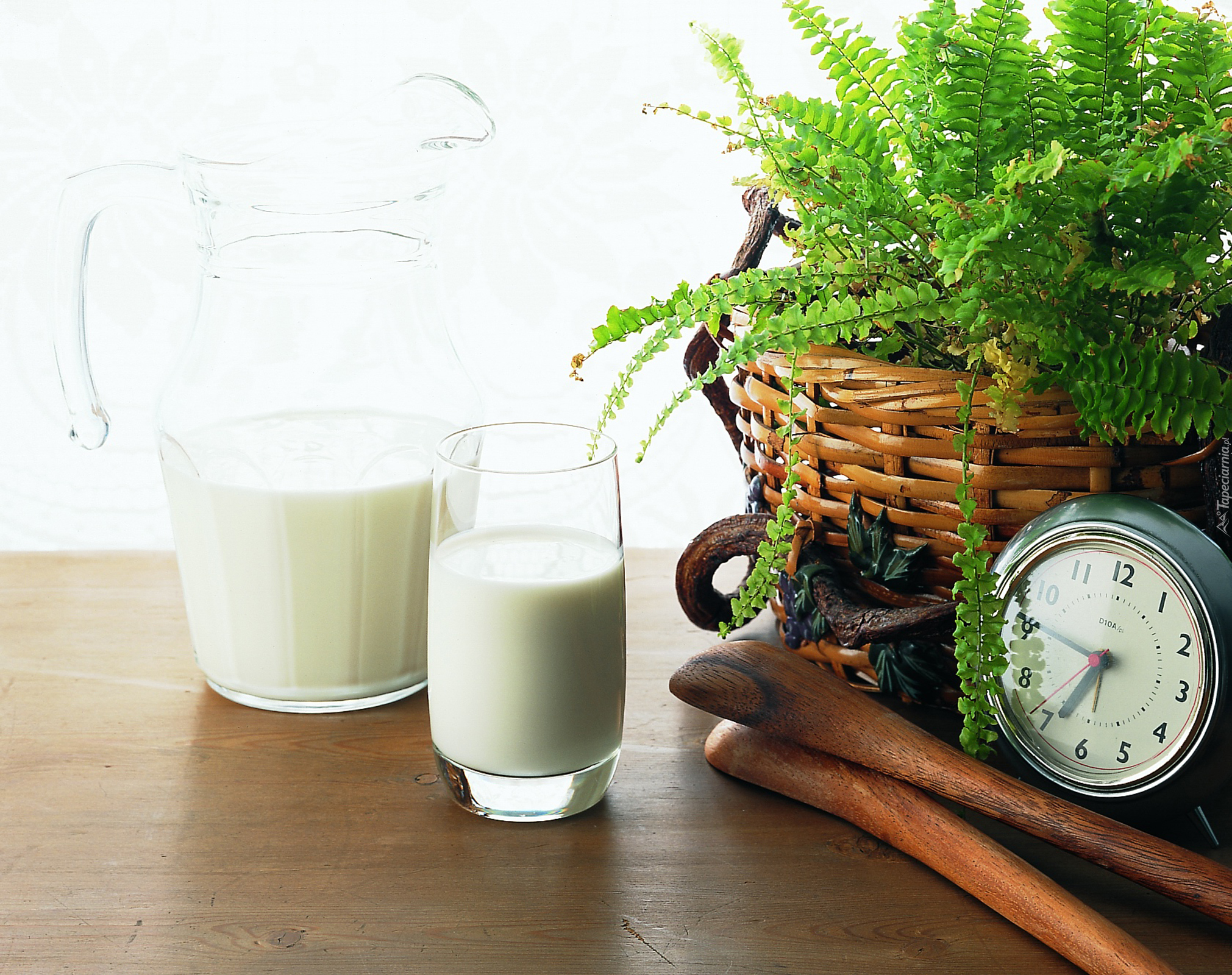 Edytor tapety: Zegarek, Paprotka, Wiklinowy, Koszyk, Mleko, Szkło