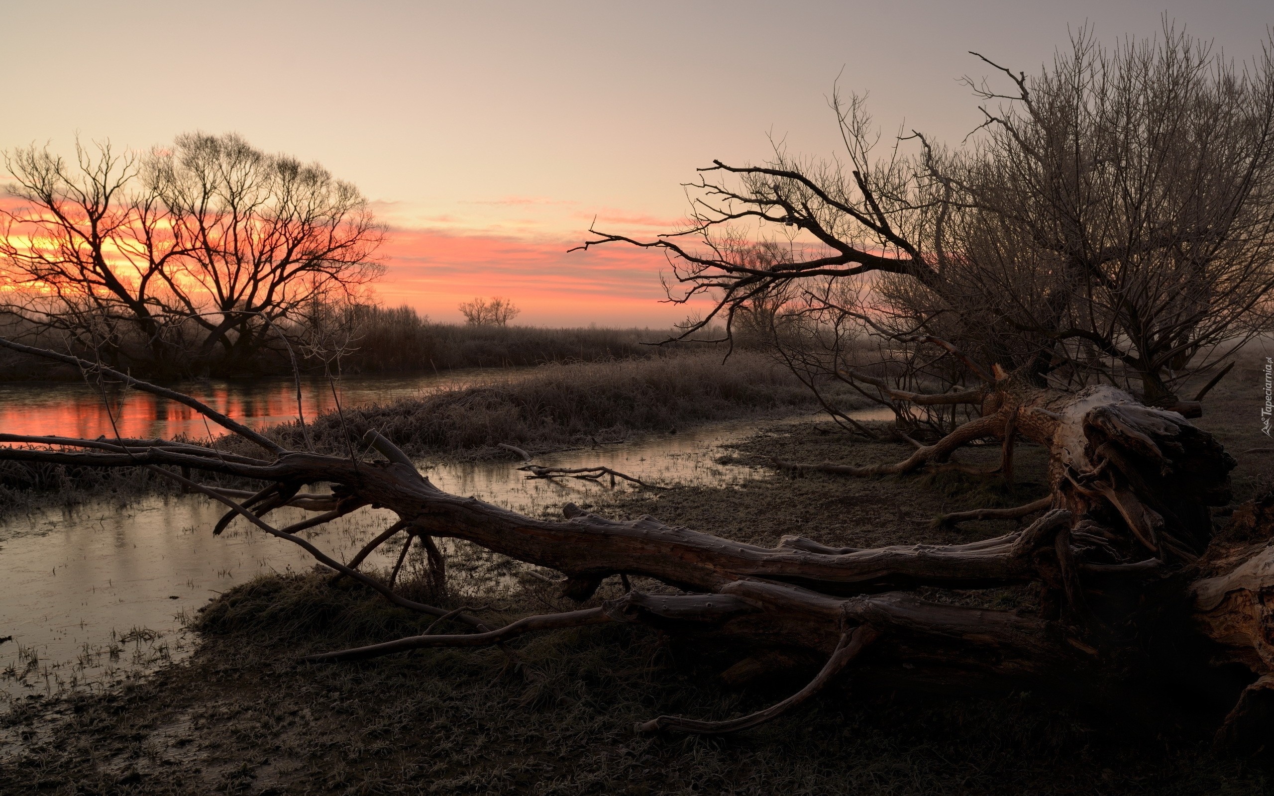Edytor tapety: Rzeka, Zachód słońca, Drzewa