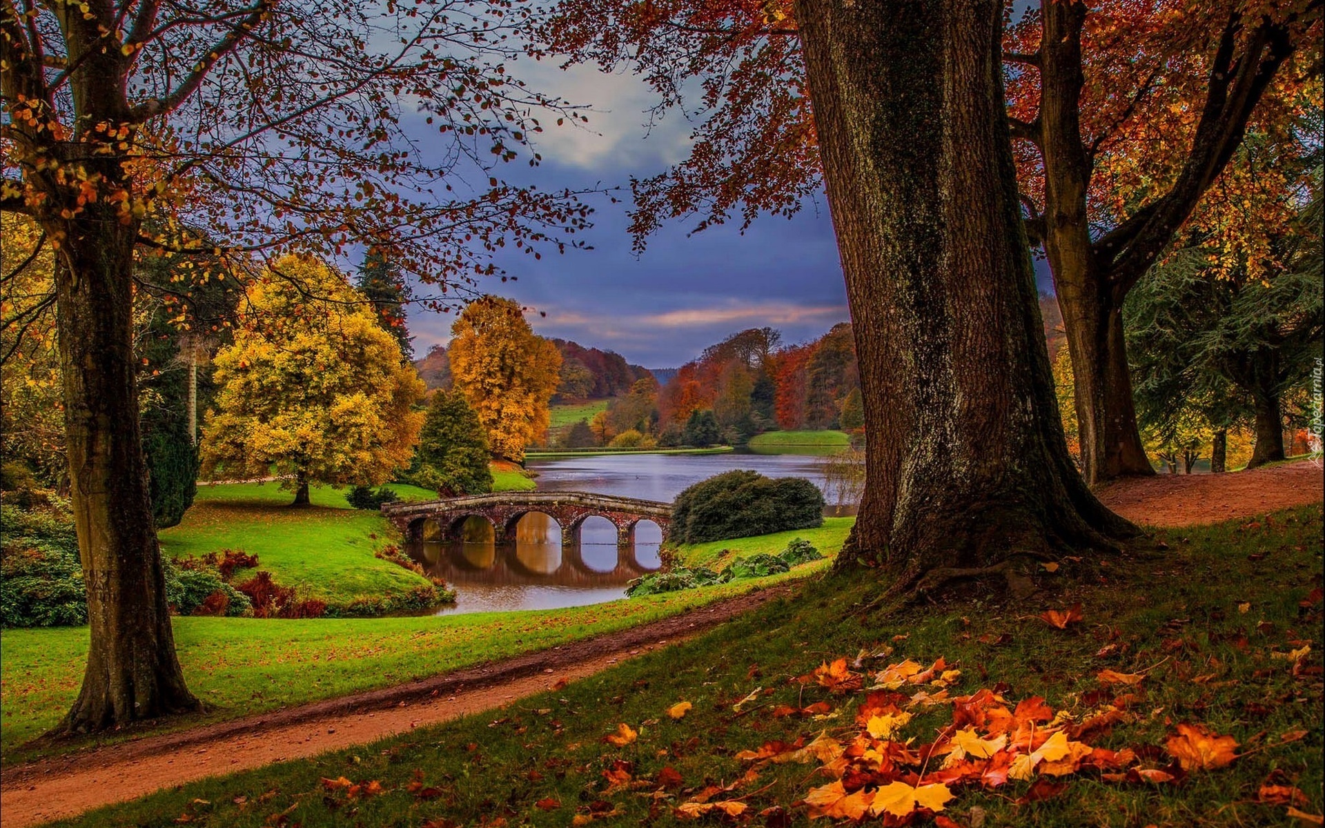 Edytor tapety: Rzeka, Most, Park, Jesień
