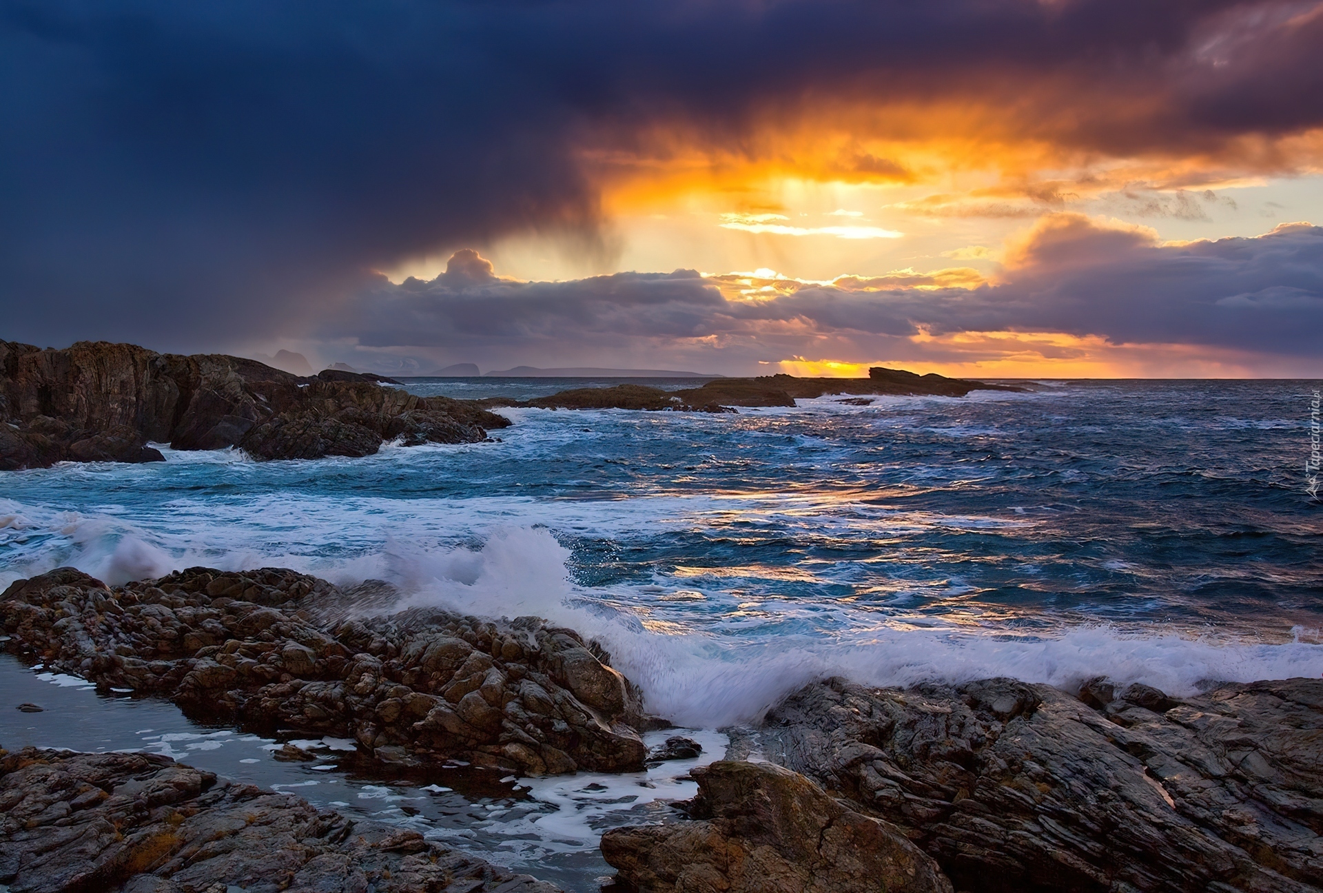 Edytor tapety: Zachód, Słońca, Morze, Skały