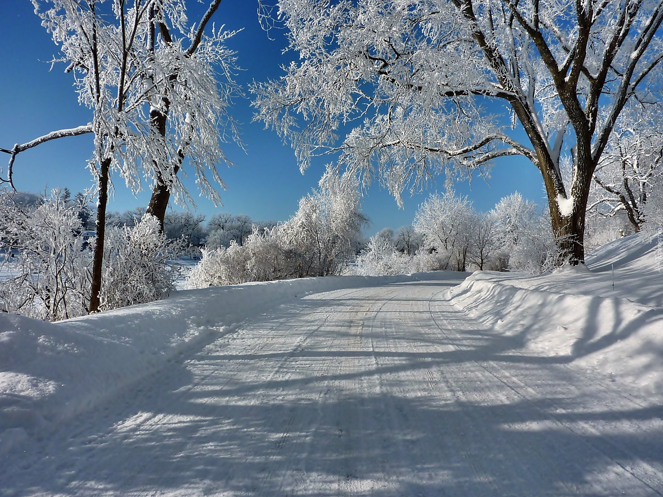 Edytor tapety: Zima, Droga, Oszronione, Drzewa