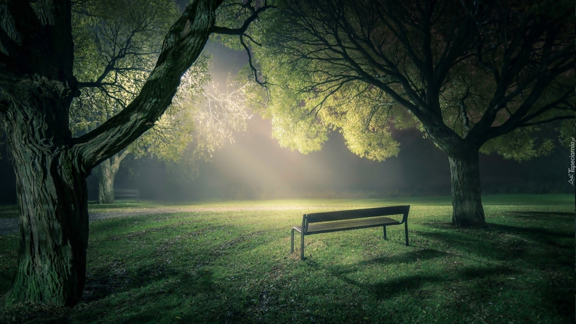 Edytor tapety: Drzewa, Ławka, Światło