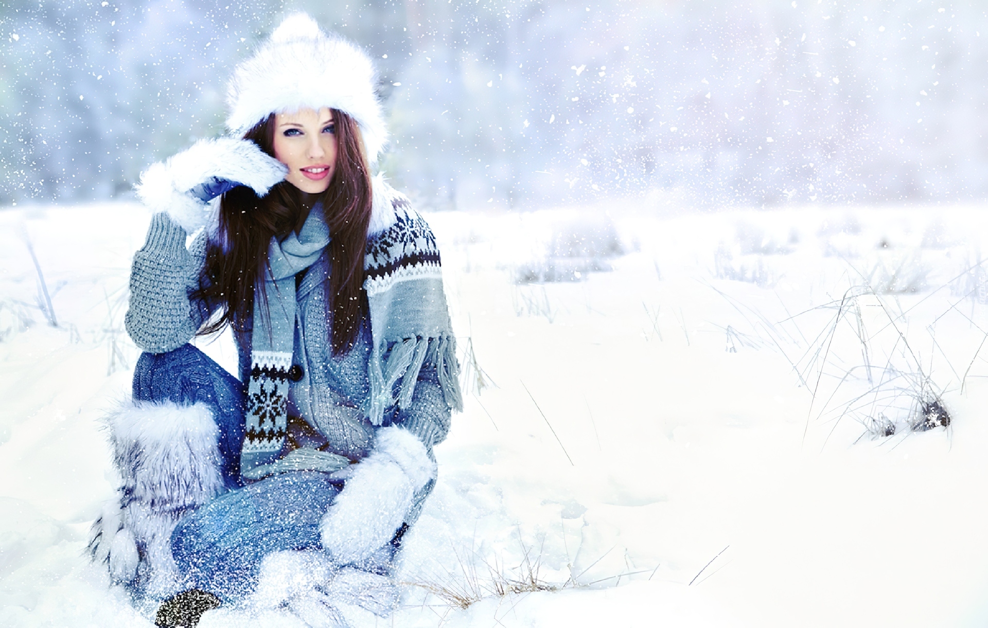 Edytor tapety: Kobieta, Śnieg, Czapka, Rękawice