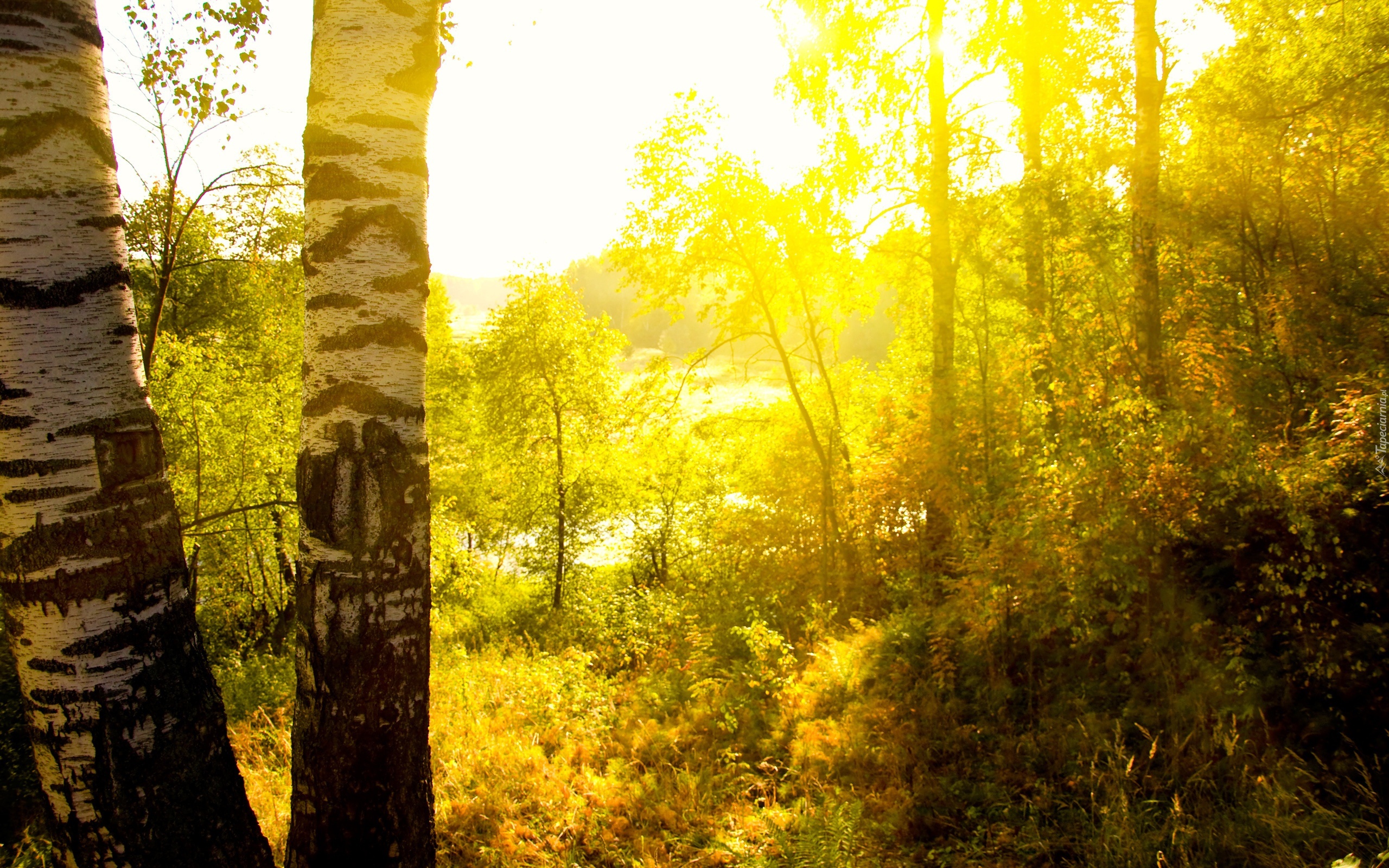Edytor tapety: Las, Drzewa, Brzoza, Paprocie