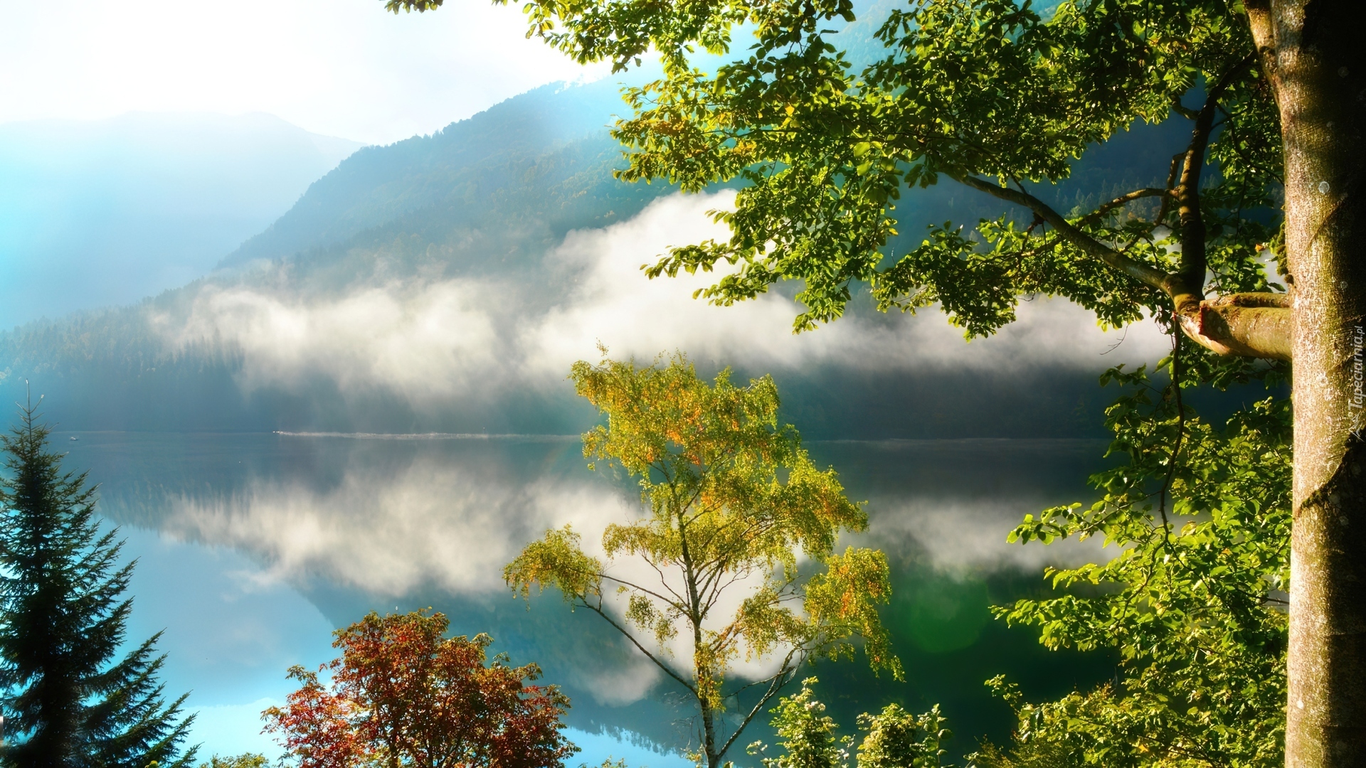 Edytor tapety: Góry, Lasy, Jezioro, Mgła