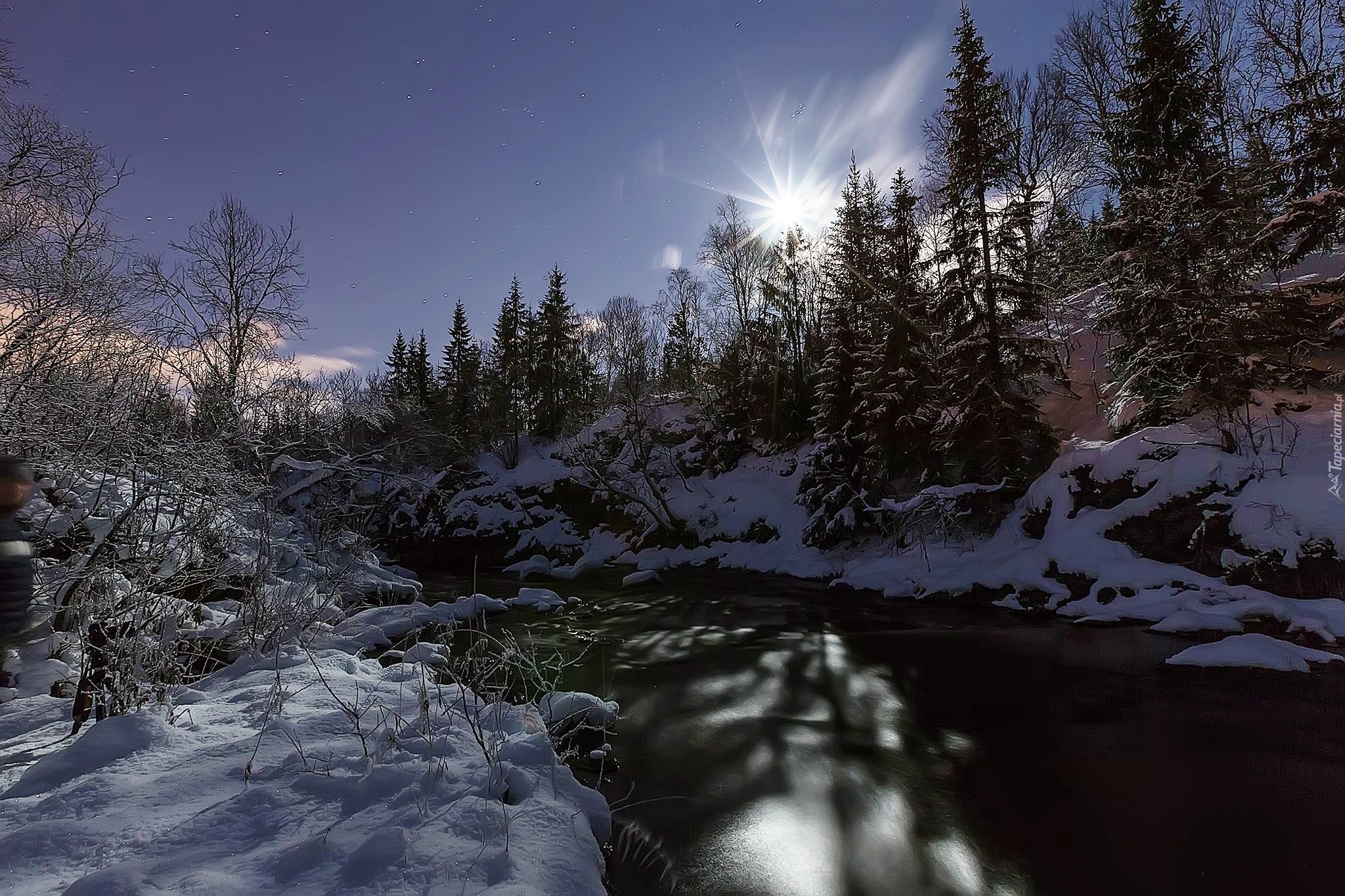 Edytor tapety: Rzeka, Śnieg, Lasy