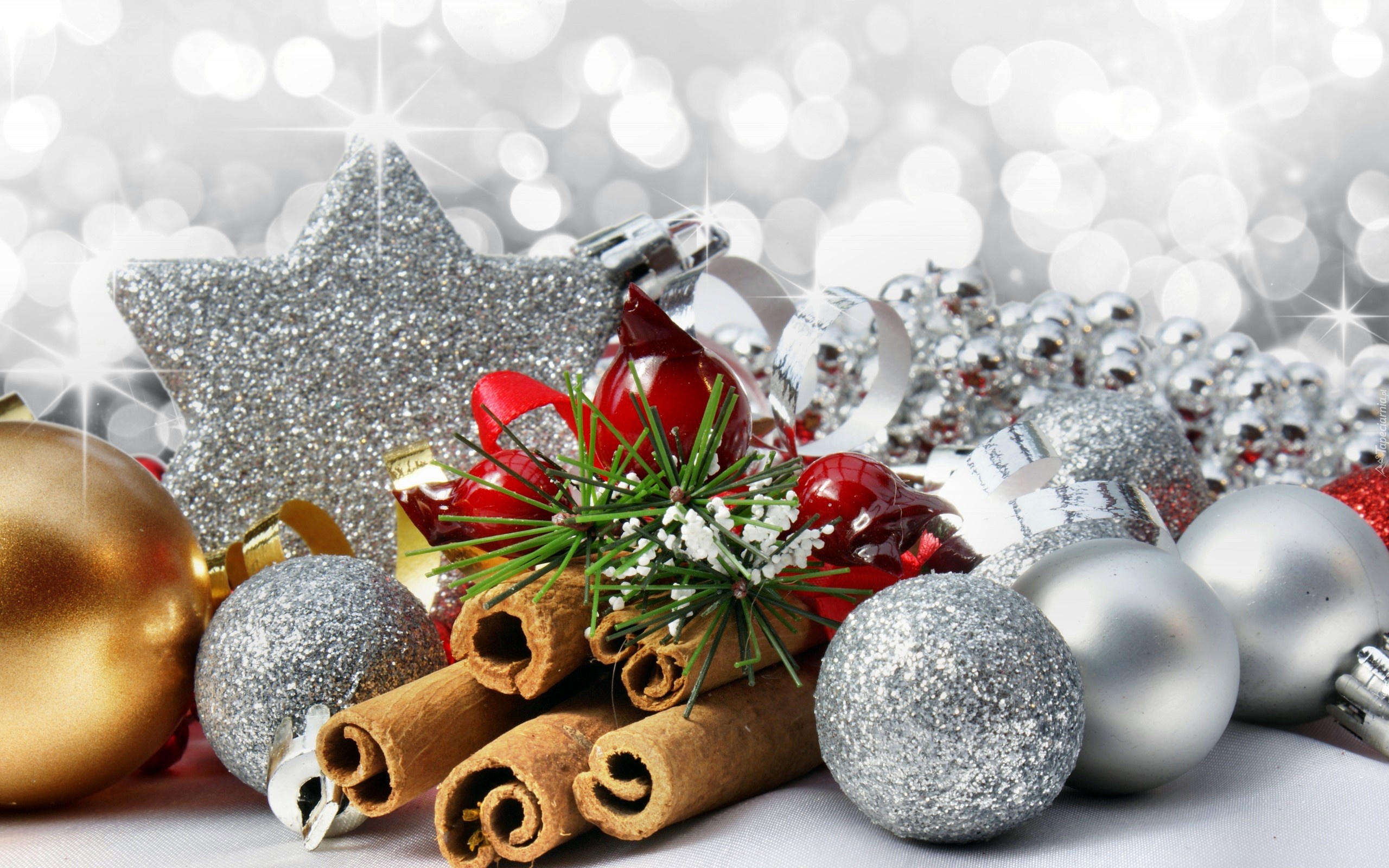 Edytor tapety: Srebrne, Bombki, Gwiazda, Dekoracja, Świąteczna