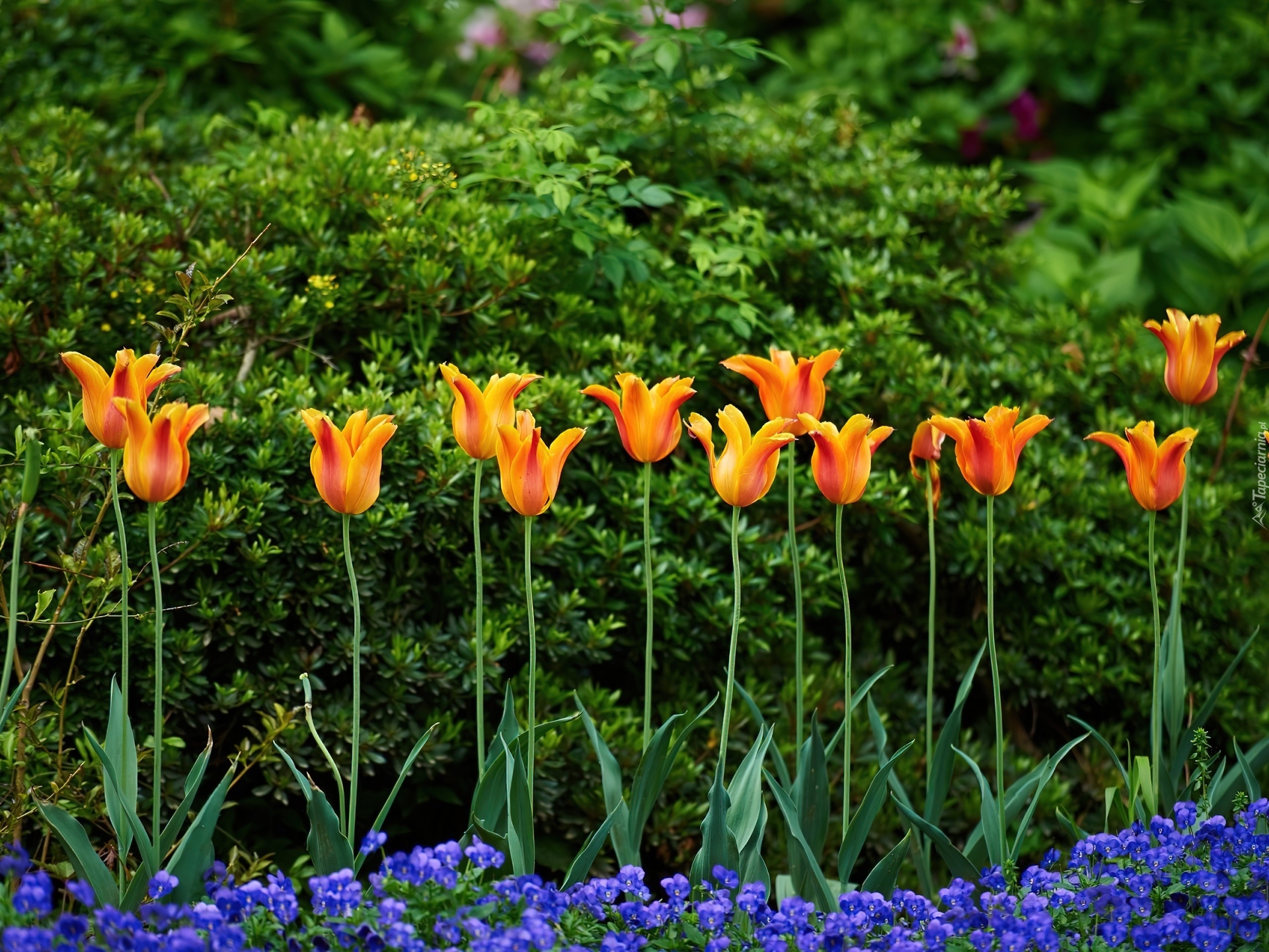 Edytor tapety: Bratki, Tulipany, Iglaste, Krzewy
