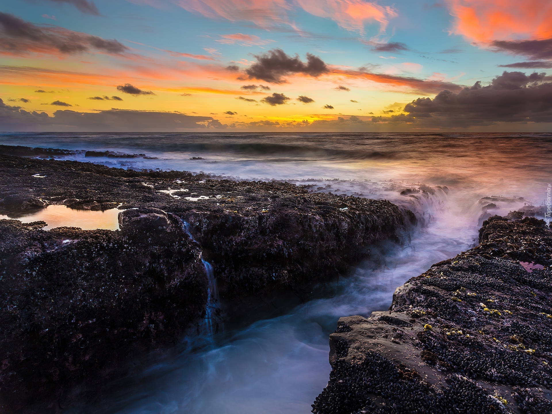 Edytor tapety: Morze, Chmury, Zachód, Słońca, Brzeg