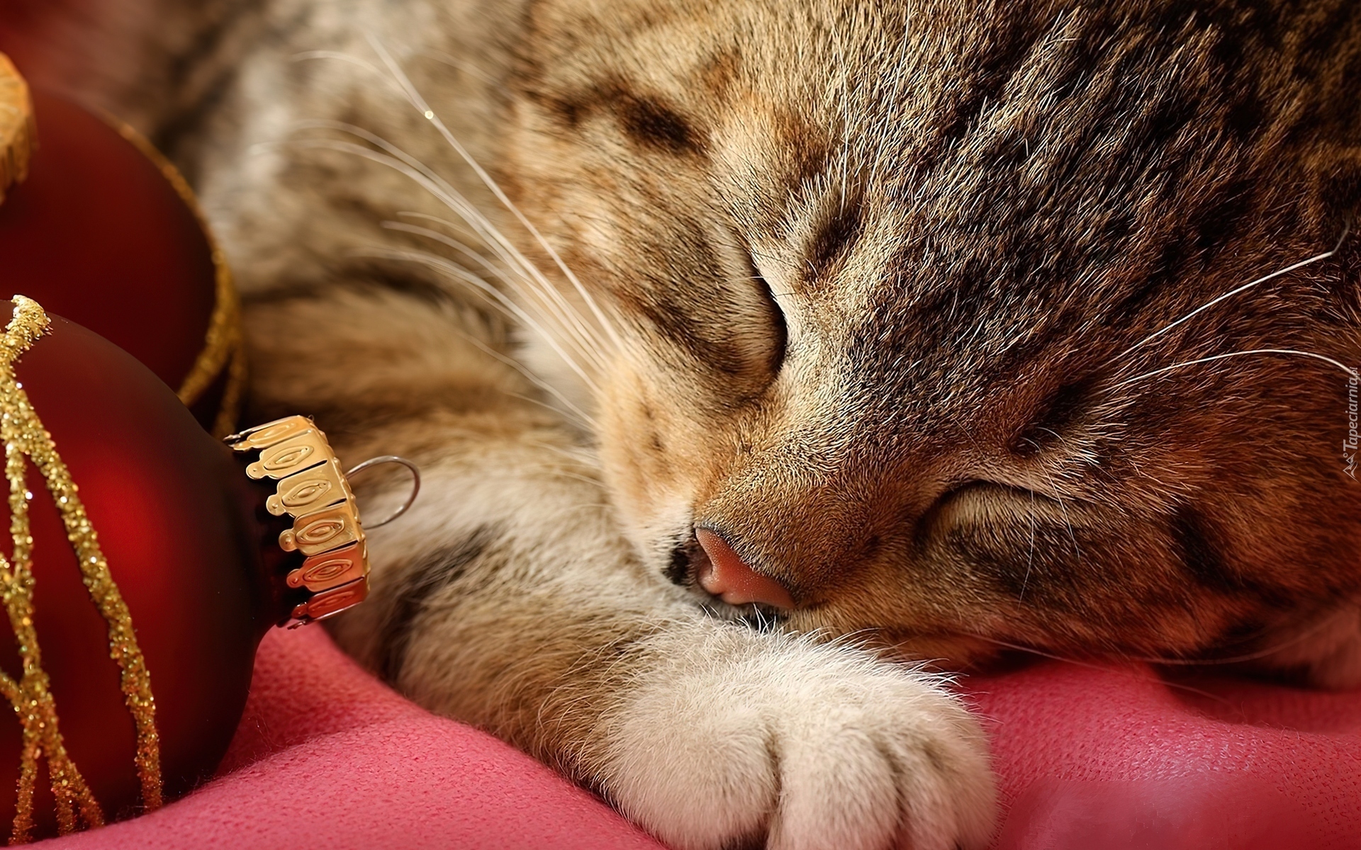 Edytor tapety: Śpiący, Kotek, Bombki