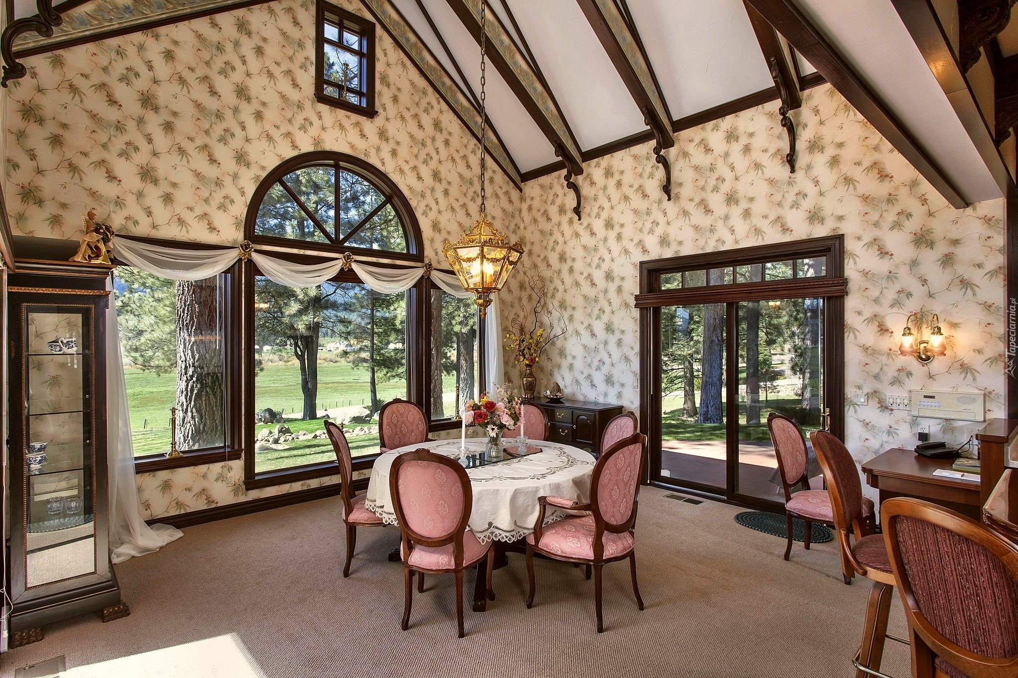 Edytor tapety: Stylowy, Pokój, Stół, Krzesła, Okno, Drzewa, Widok