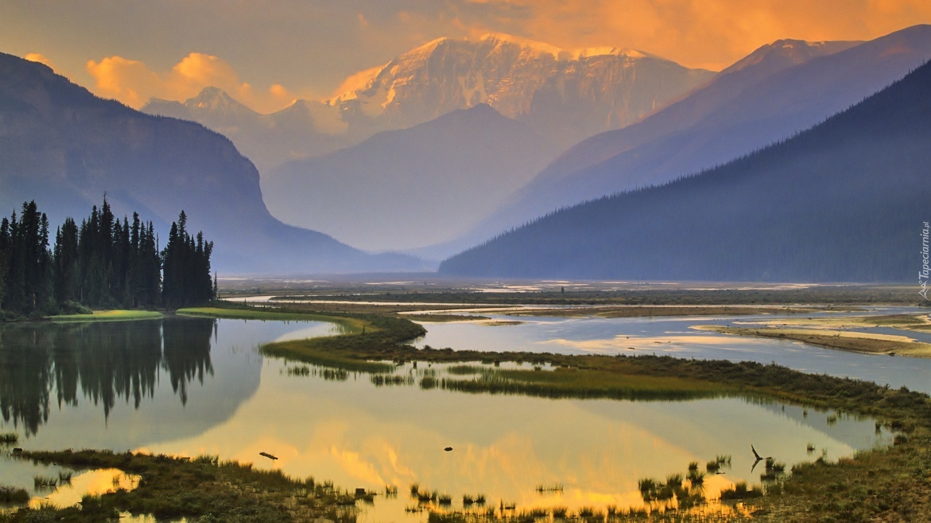 Edytor tapety: Rzeka, Góry, Lasy, Mgła, Jesień