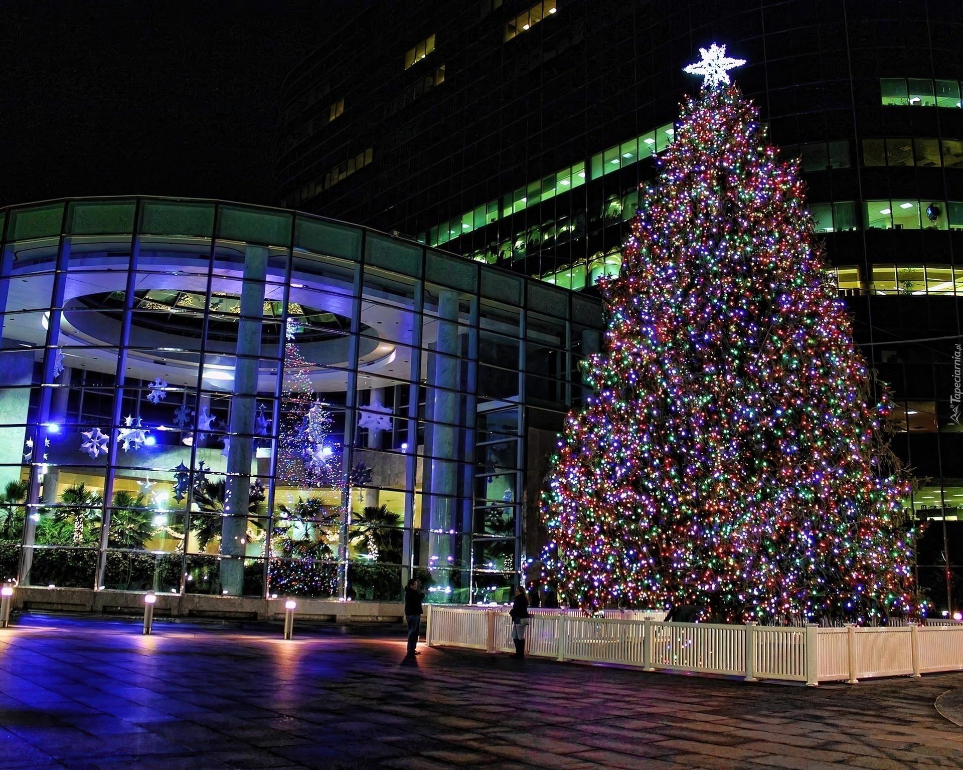 Edytor tapety: Miasto, Noc, Choinka, Światła