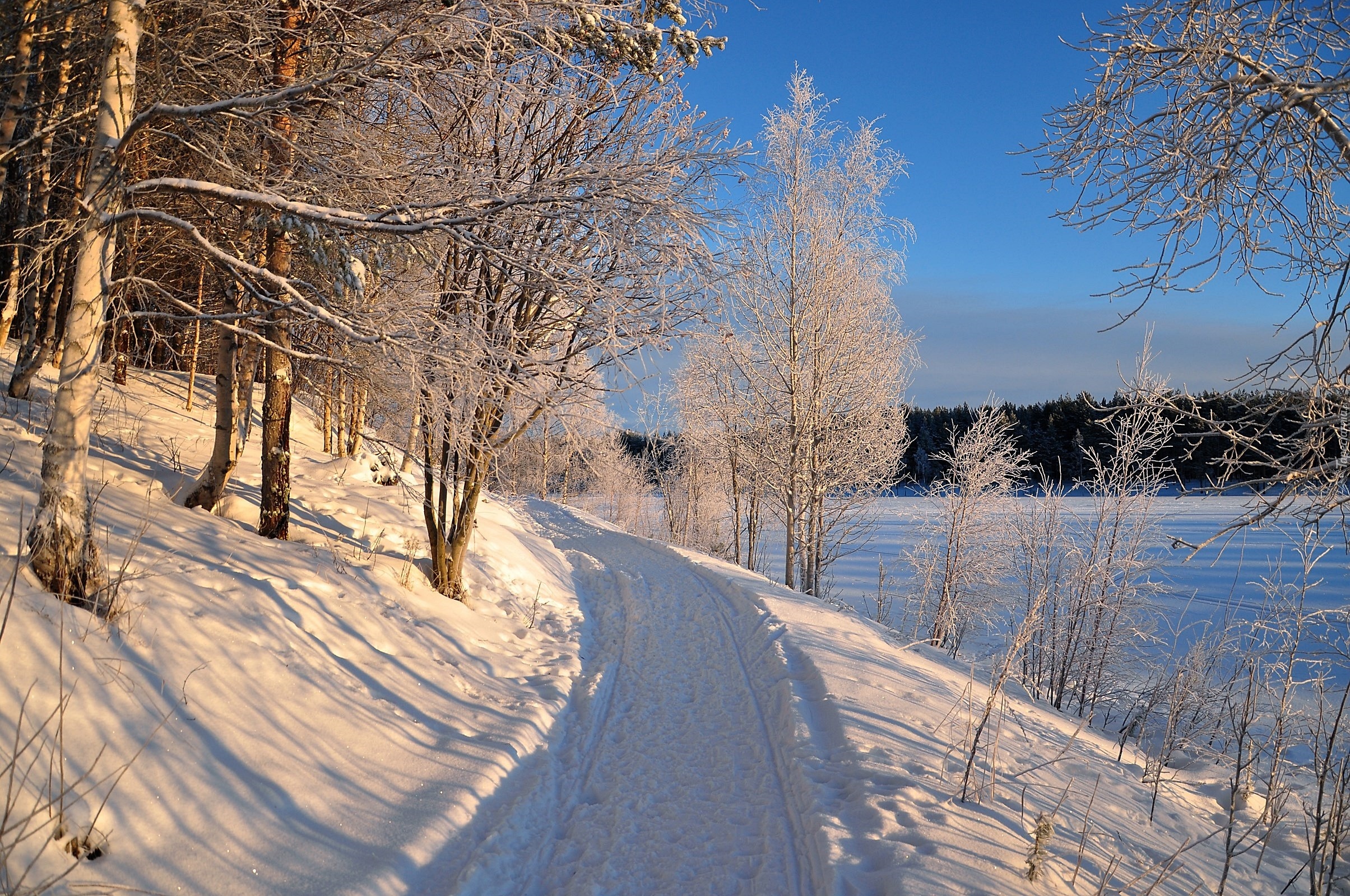 Edytor tapety: Zima, Ścieżka, Oszronione, Drzewa