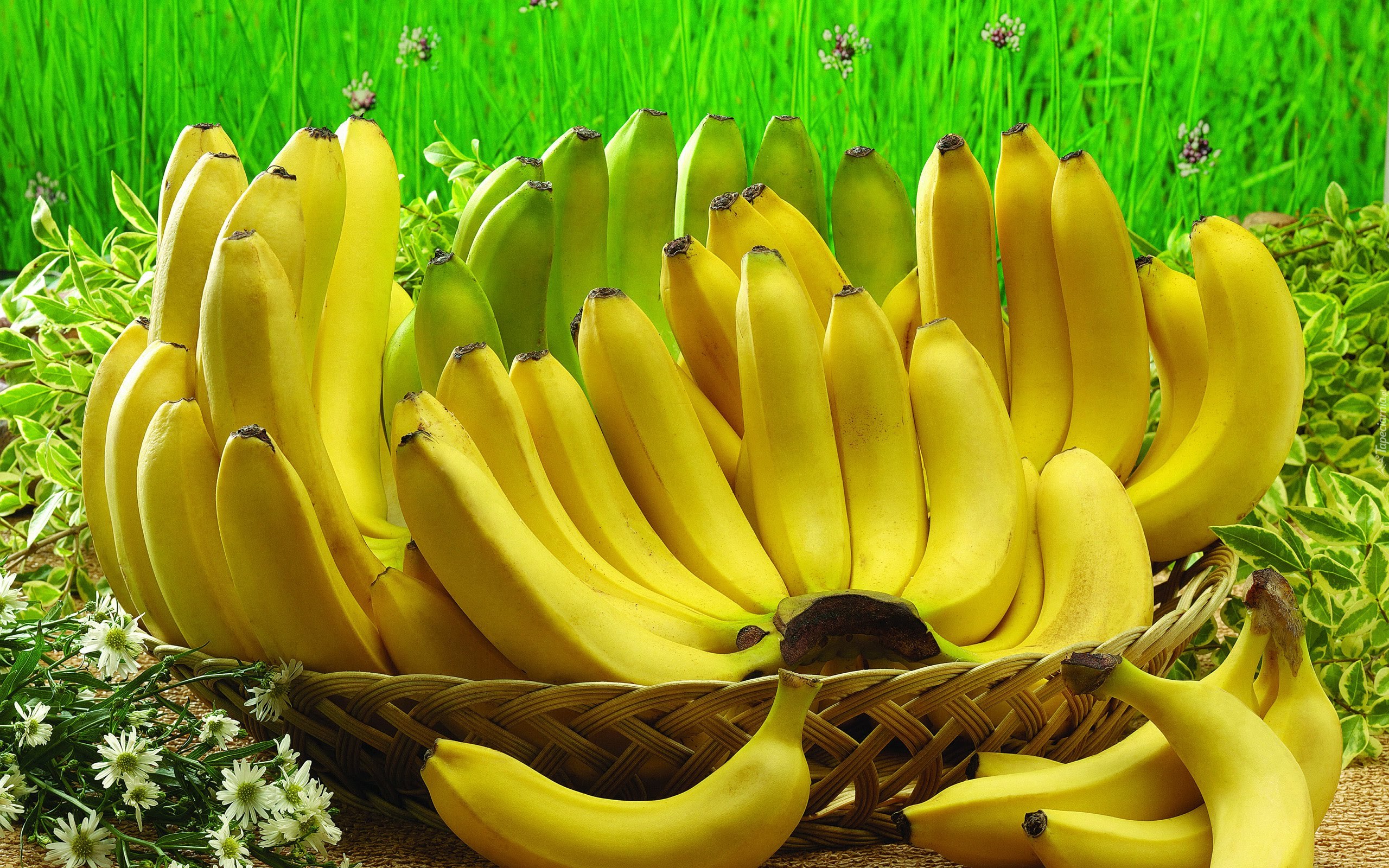 Edytor tapety: Banany, Koszyczek, Trawa, Rumianek