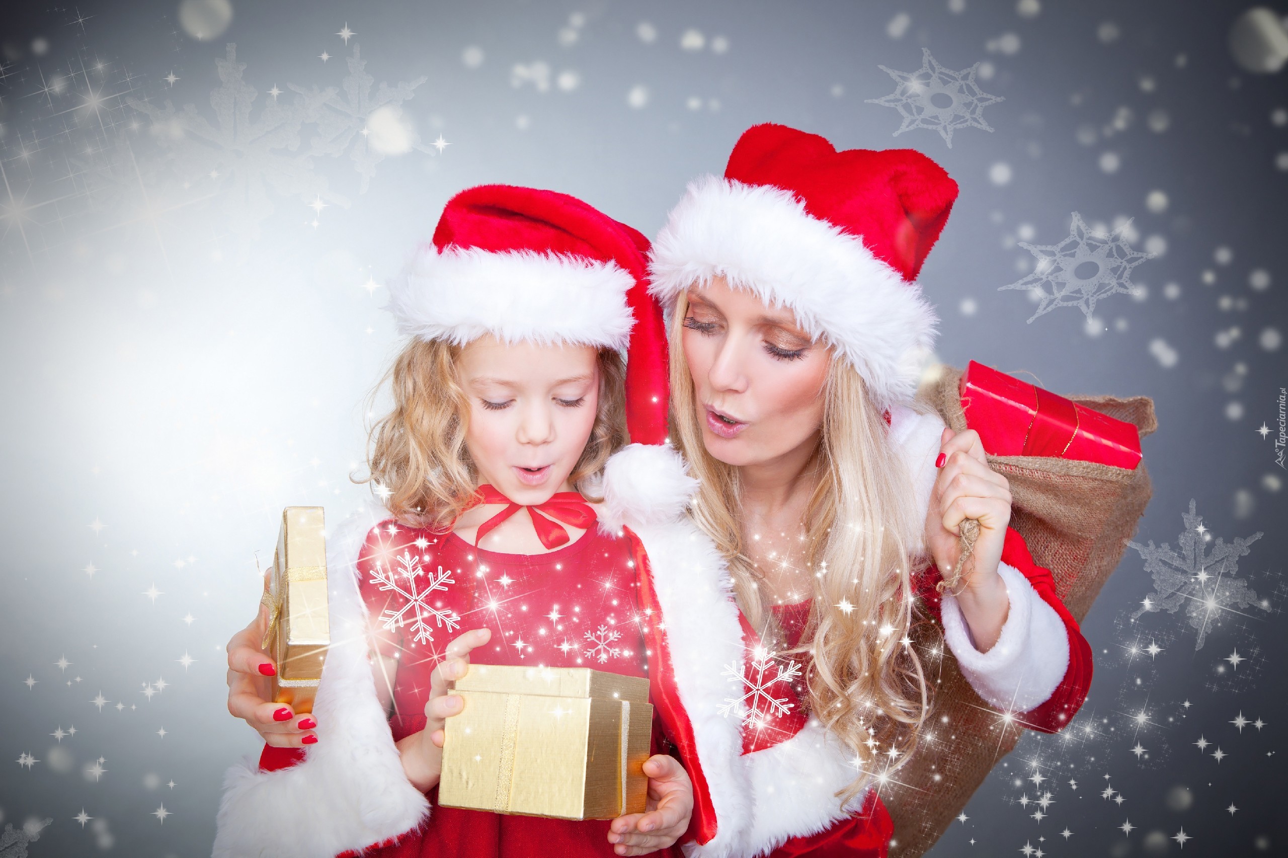 Edytor tapety: Kobieta, Dziewczynka, Strój, Mikołaja, Prezenty