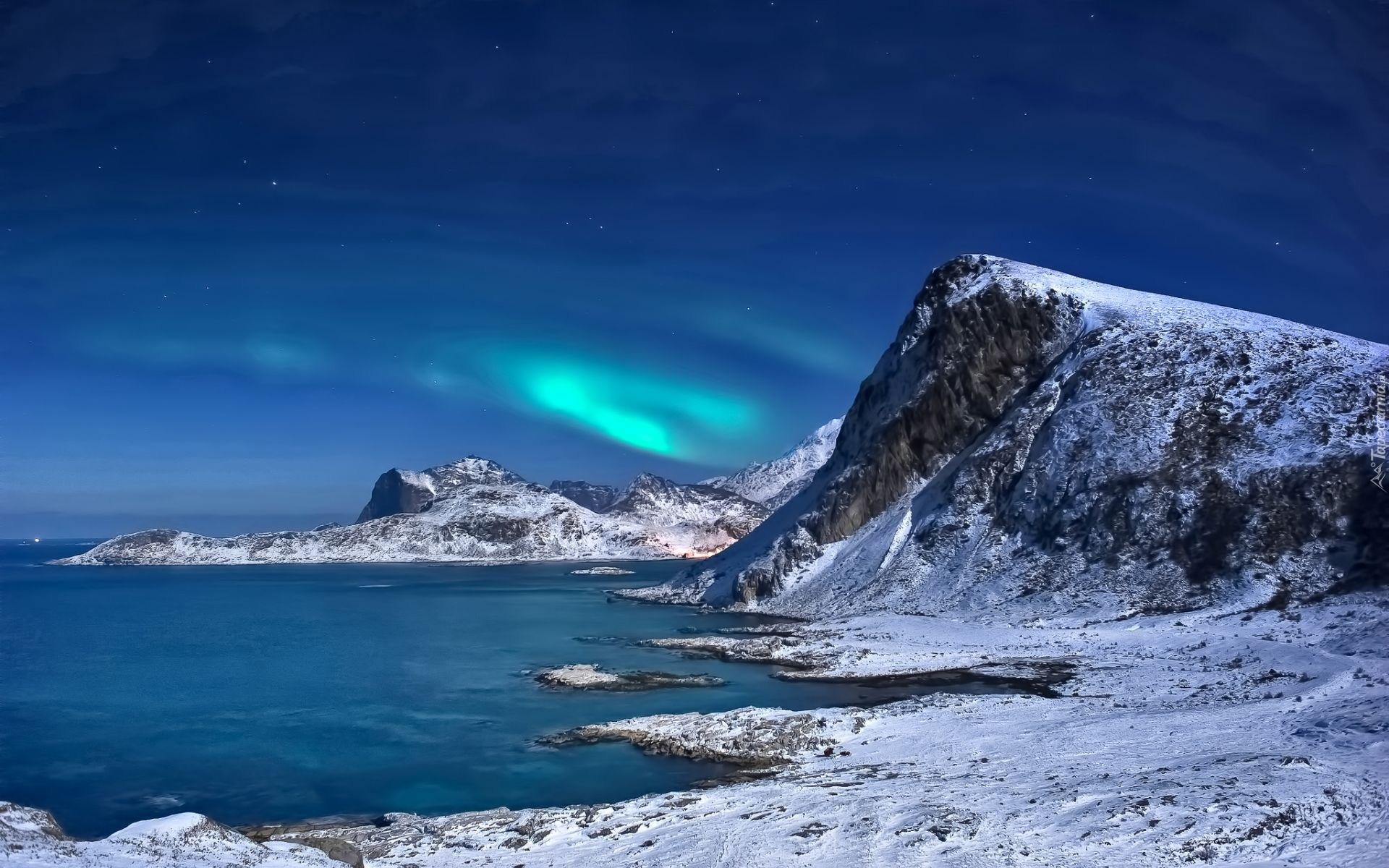 Edytor tapety: Morze, Wybrzeże, Zorza Polarna