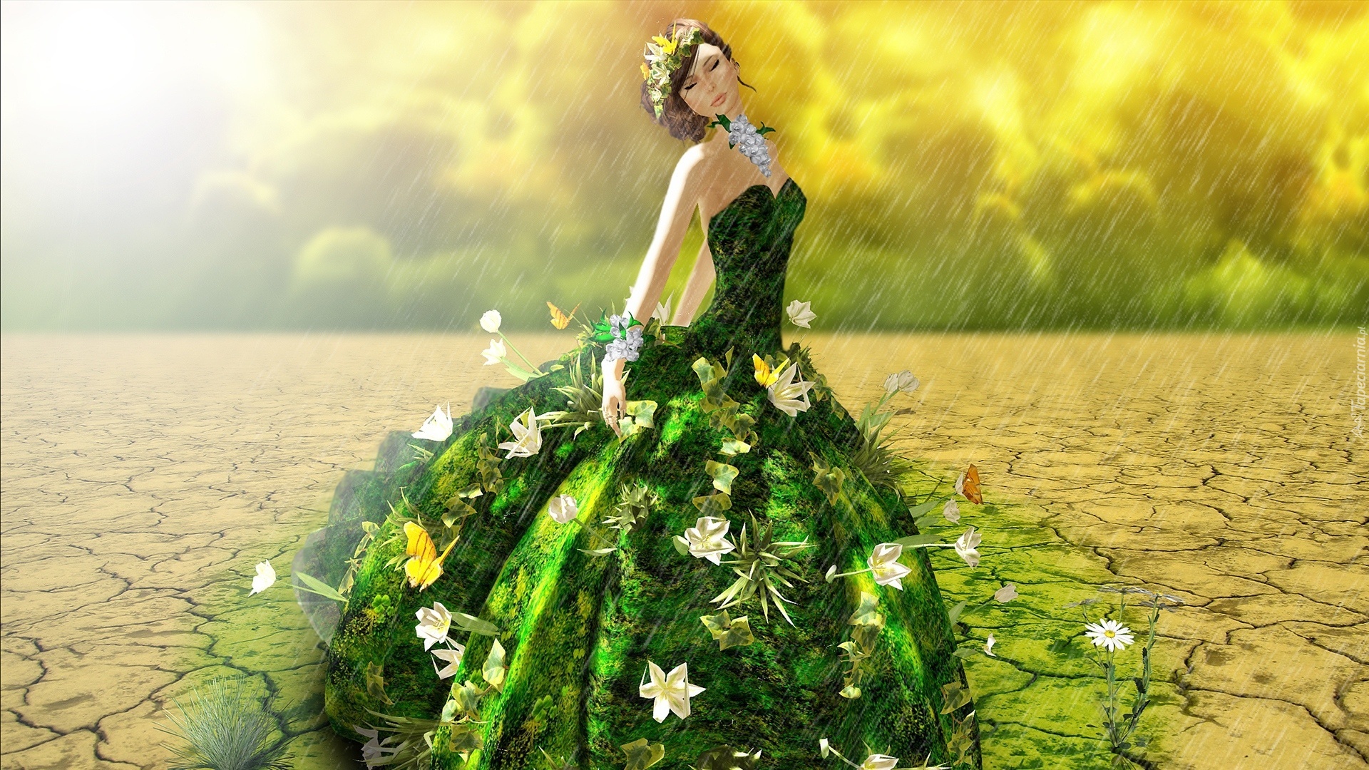 Edytor tapety: Fantasy, Dziewczyna, Brunetka, Deszcz
