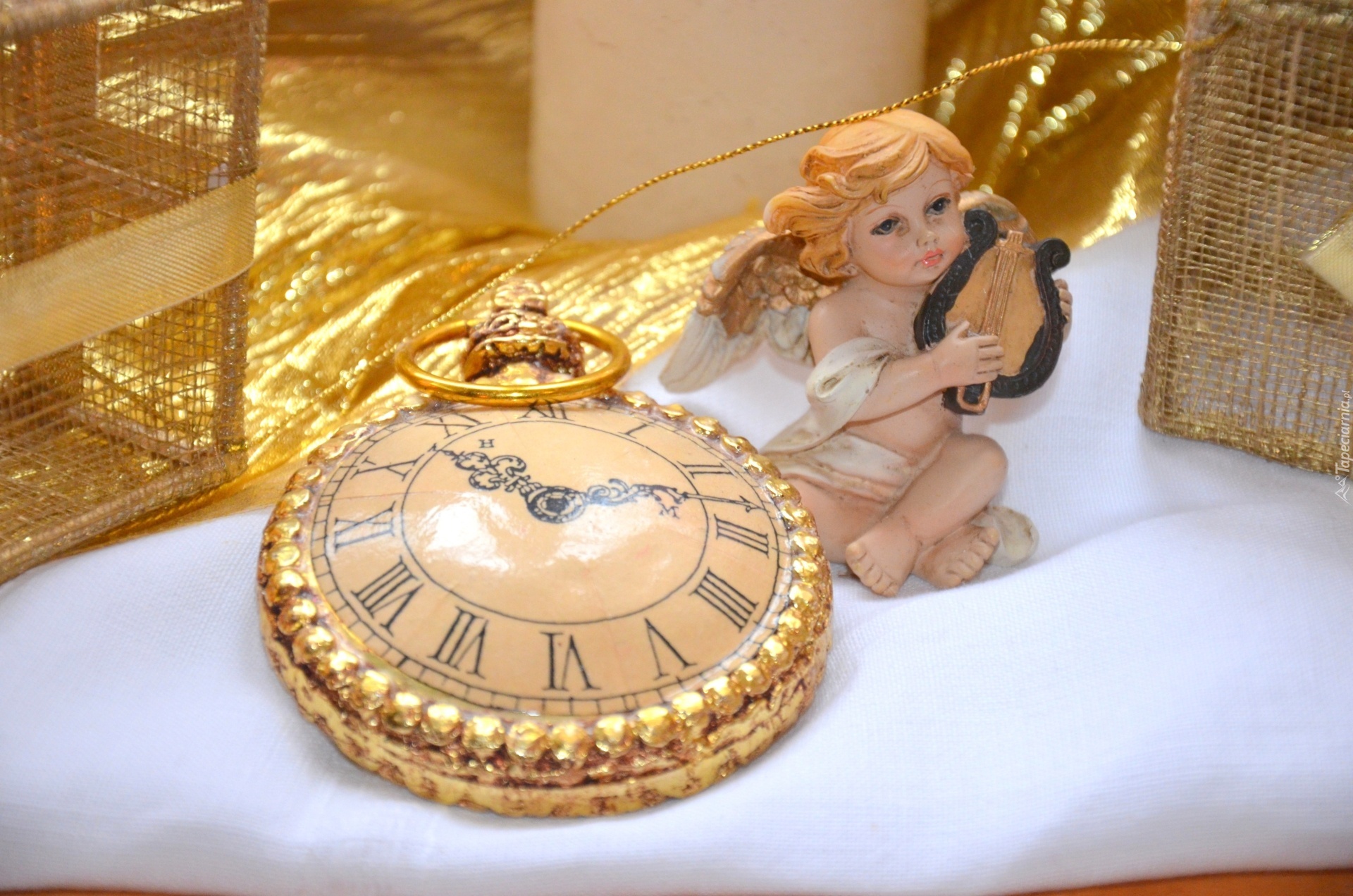 Edytor tapety: Zegar, Aniołek, Dekoracja, Sylwester