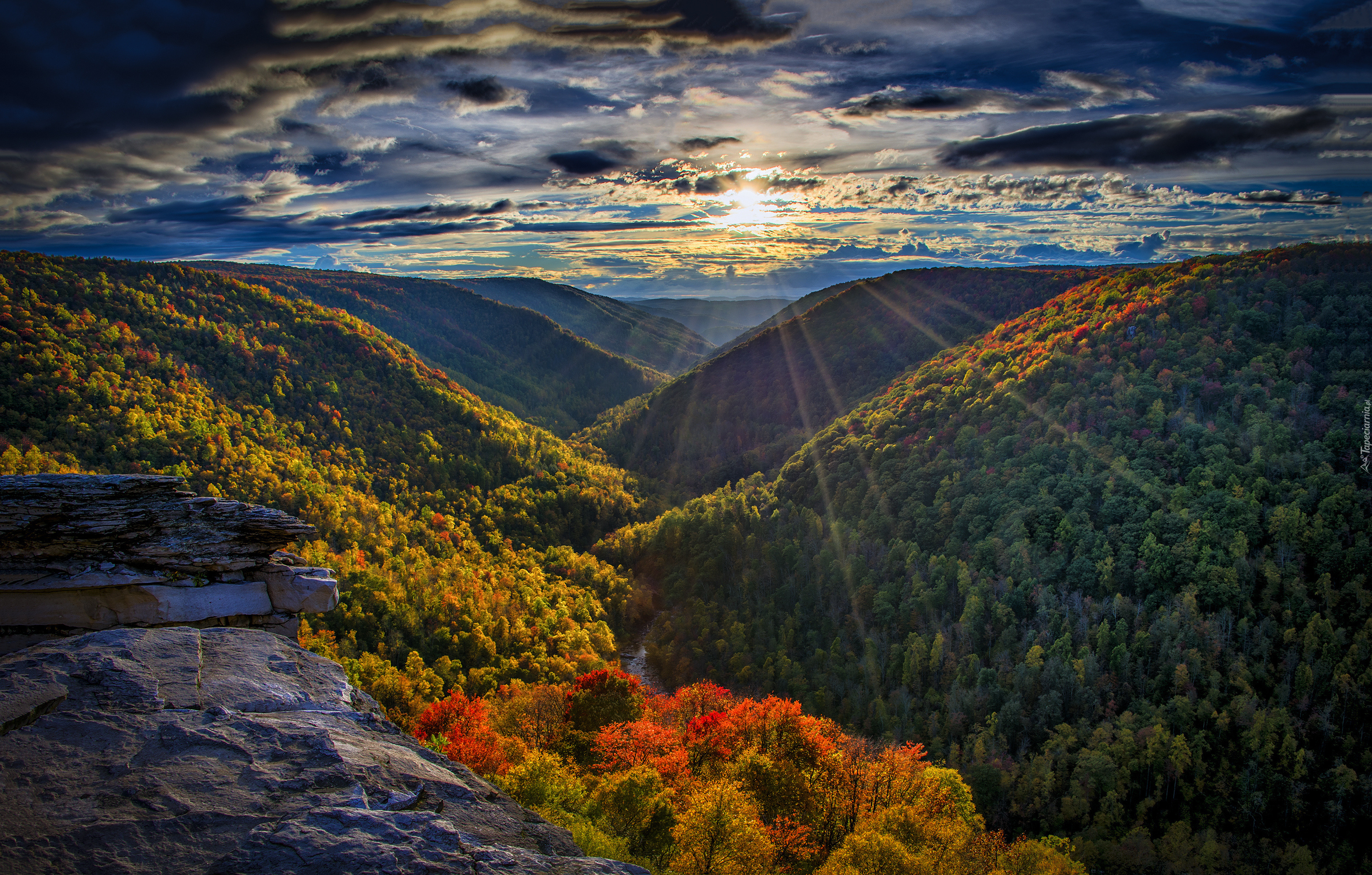 Edytor tapety: Góry, Lasy, Skała, Promienie Słońca