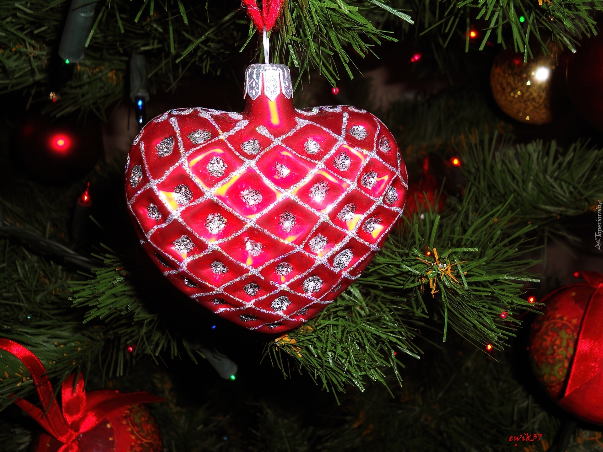 Edytor tapety: Świąteczna, Choinka, Bombka, Serce
