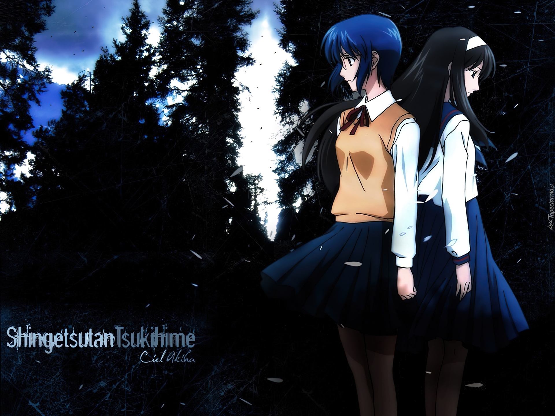 Edytor tapety: Shingetsutan Tsukihime, dziewczyny, las