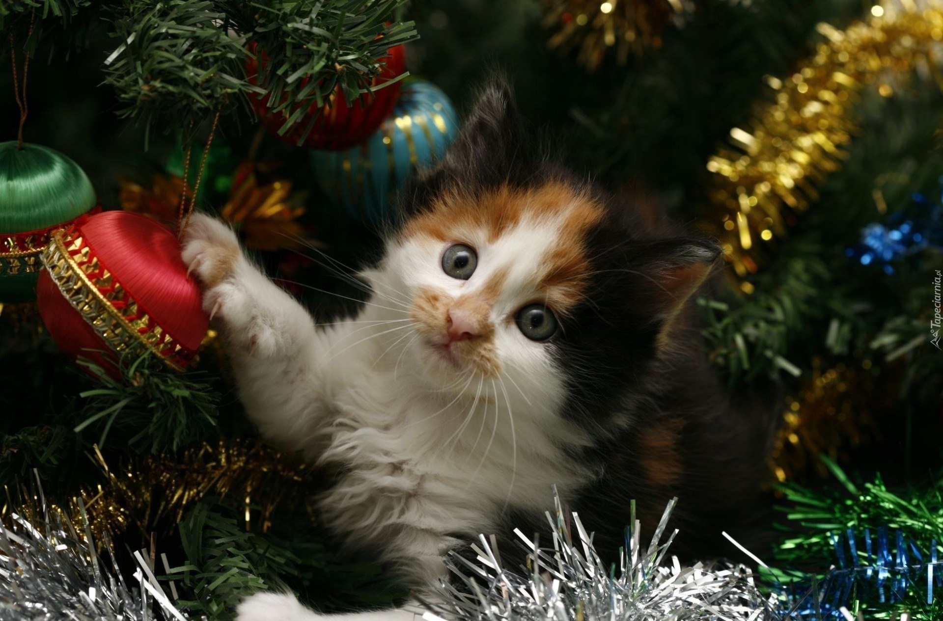 Edytor tapety: Łaciaty, Kotek, Choinka
