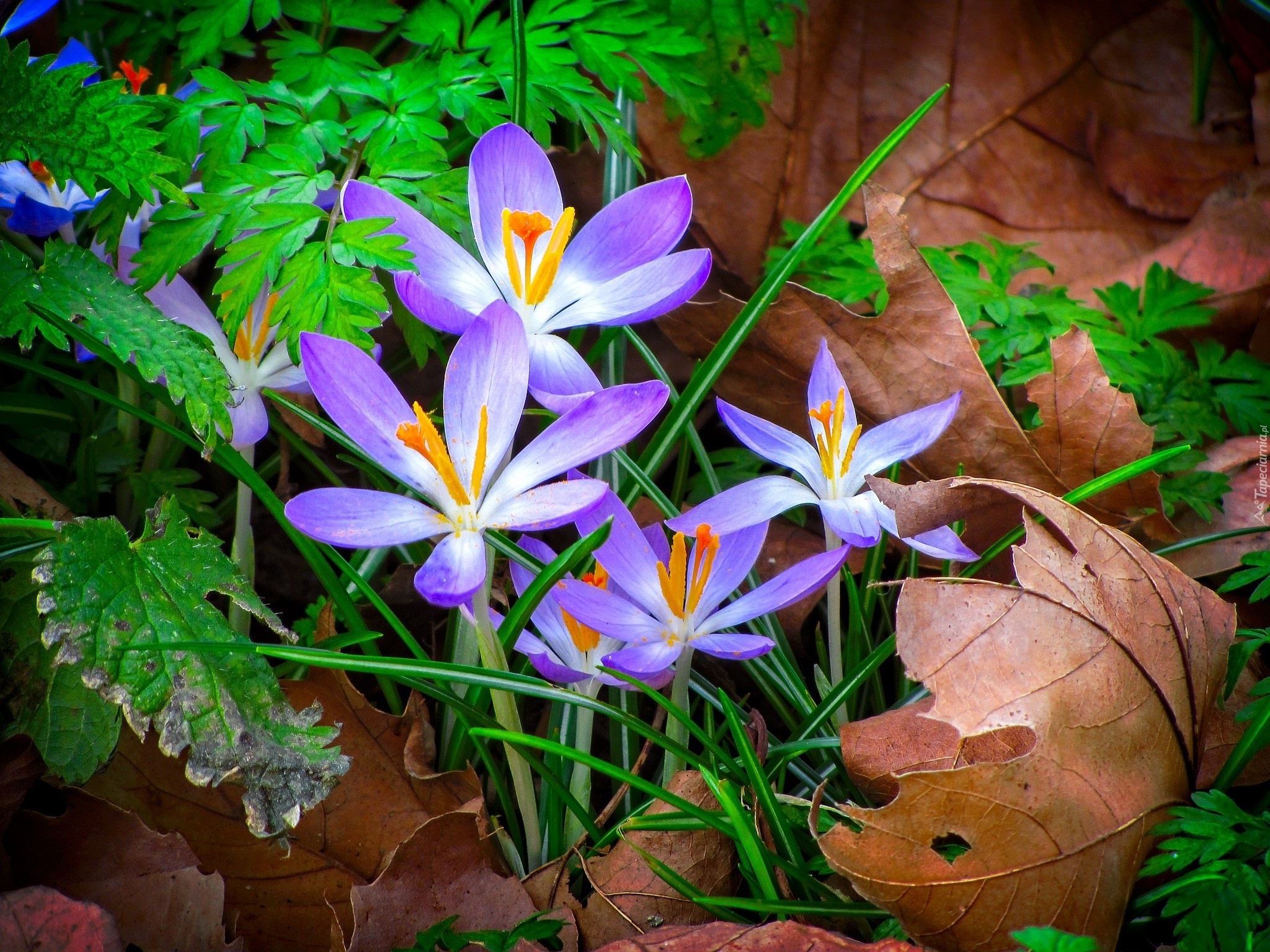 Edytor tapety: Krokusy, Uschnięte, Liście