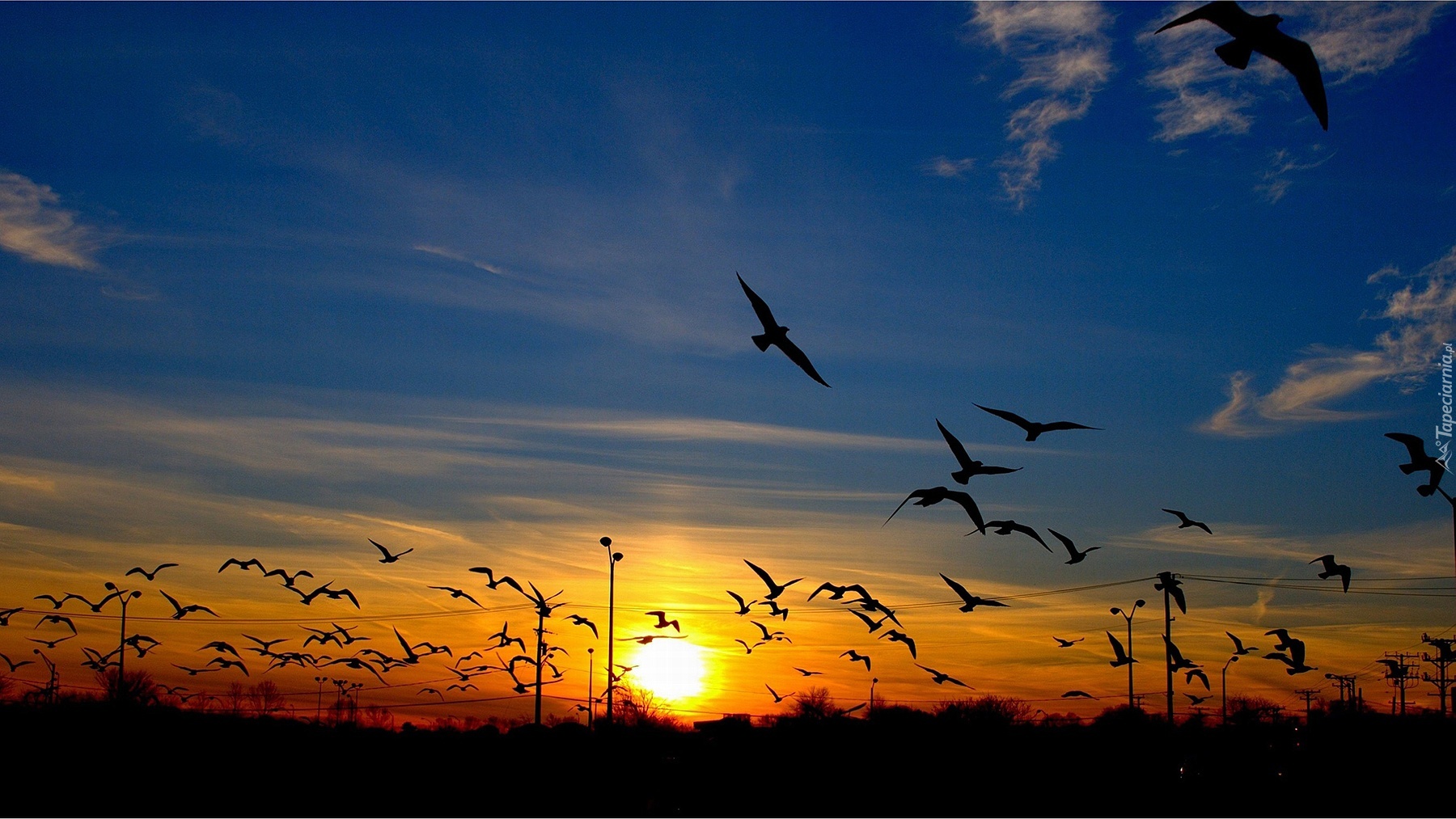 Edytor tapety: Zachód, Słońca, Niebo, Ptaki