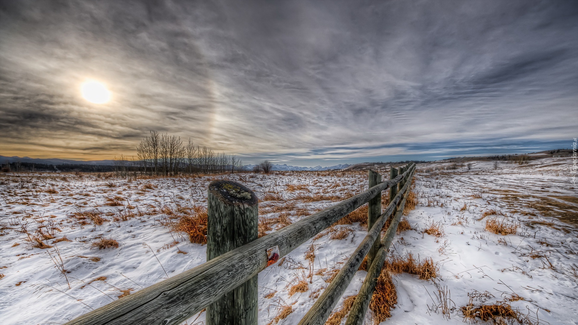 Edytor tapety: Zima, Pole, Płot, Chmury