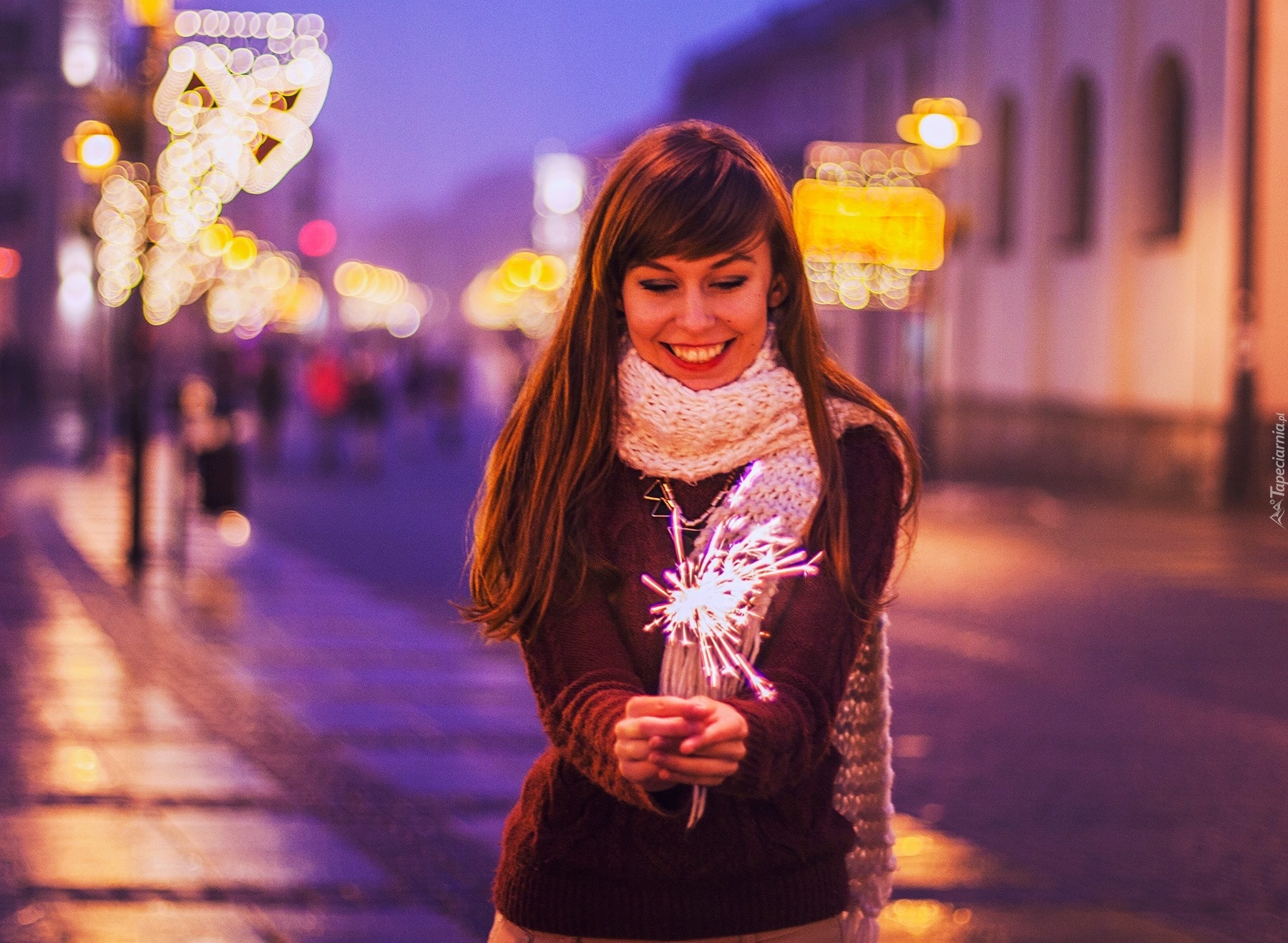Edytor tapety: Kobieta, Sztuczne, Ognie, Miasto