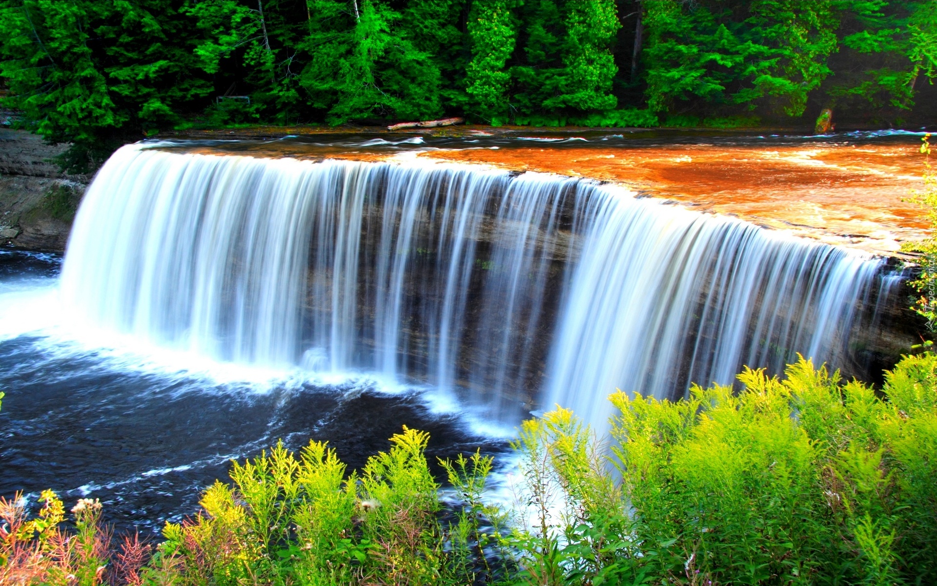 Edytor tapety: Wodospad, Rzeka, Las