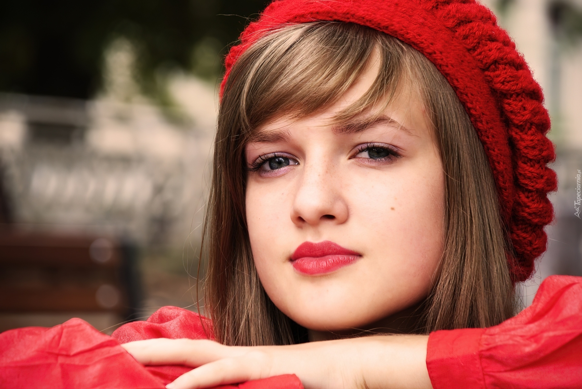 Edytor tapety: Kaylee DeFer, Kobieta, Makijaż, Czerwony, Beret, Usta