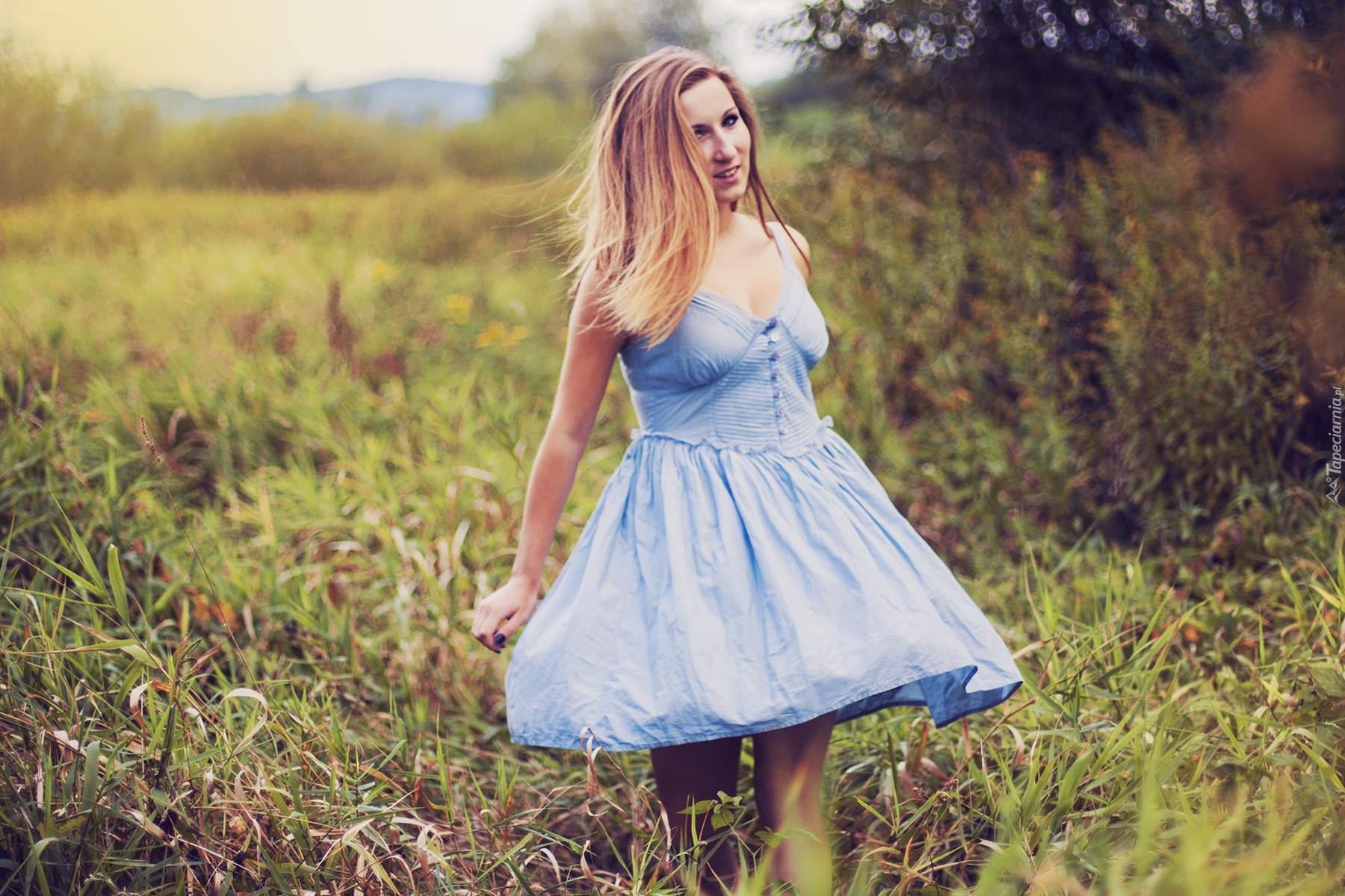 Edytor tapety: Kobieta, Blondynka, Niebieska, Sukienka