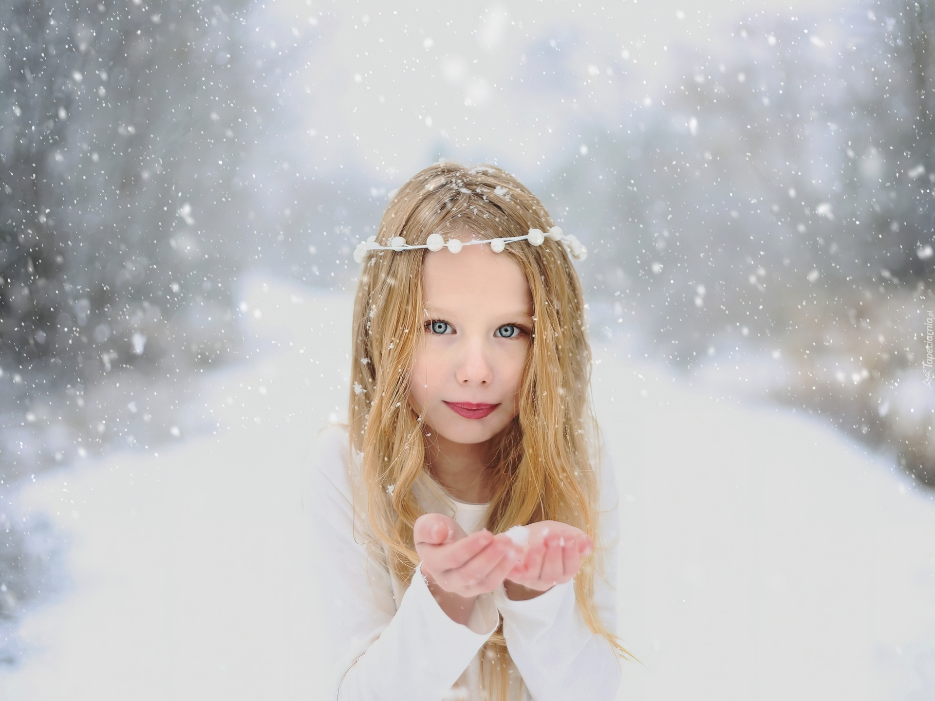 Edytor tapety: Zima, Śnieg, Dziewczynka, Aniołek