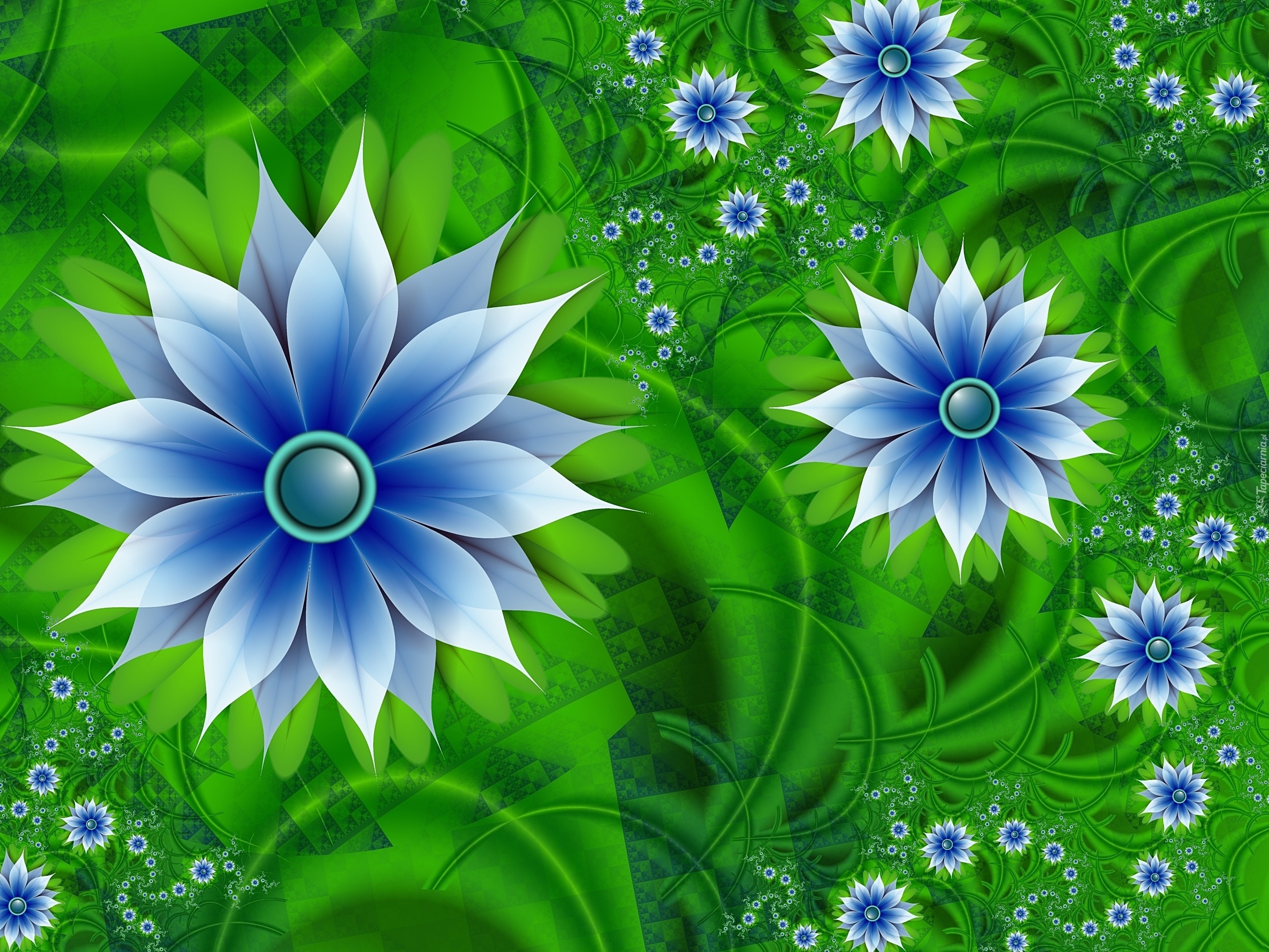 Edytor tapety: Niebieskie, Kwiaty, Grafika, 3D
