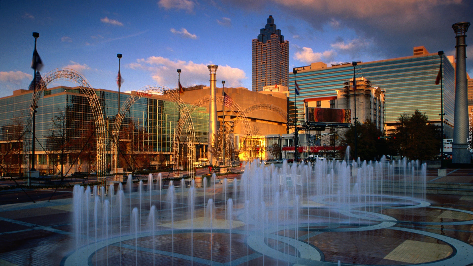 Edytor tapety: Fontanna, Domy, Atlanta, Georgia