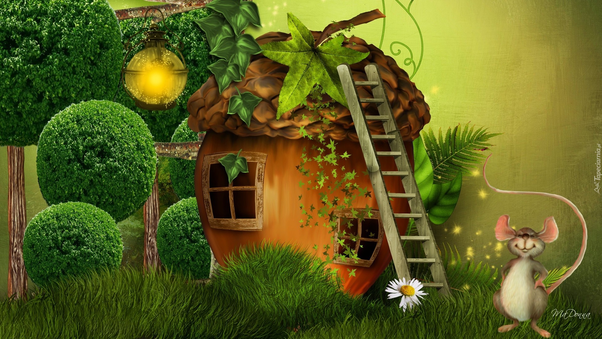 Edytor tapety: Domek, Myszka, Drabina